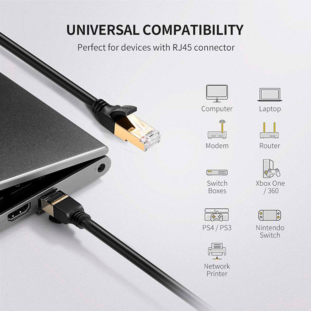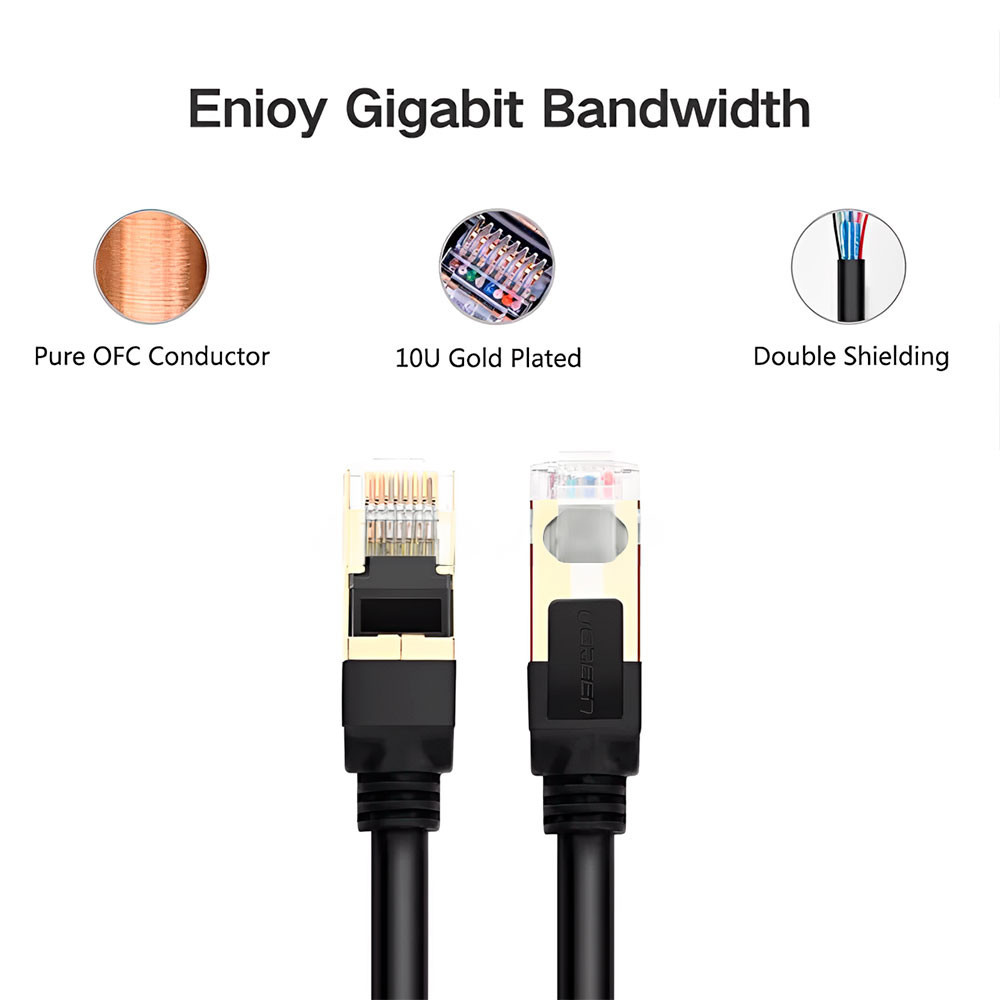 Cabo de Rede Rj45 Ugreen Cat7 F/FTP Macho 1.5Metro Preto