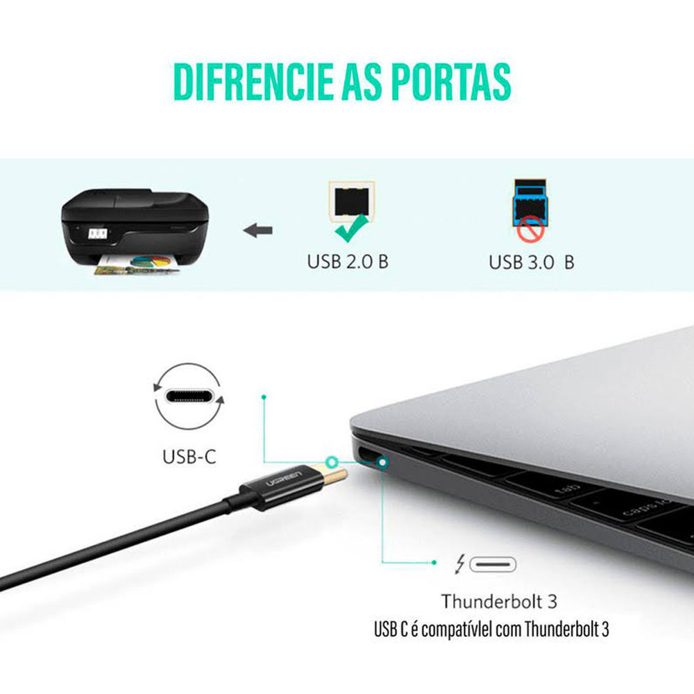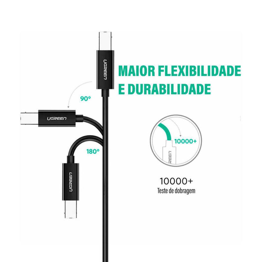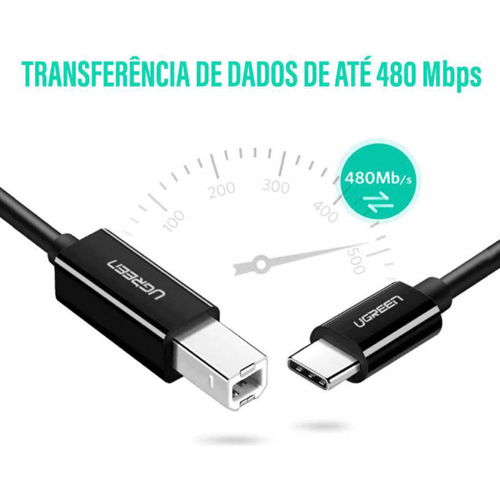 Cabo Impressora Ugreen Usb C p/Usb B Macho 1 Metro Preto