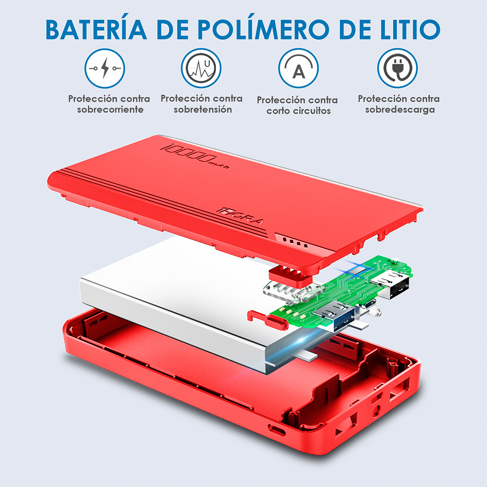 Carregador Portátil 1Hora Power Bank 10000mAh Vermelho