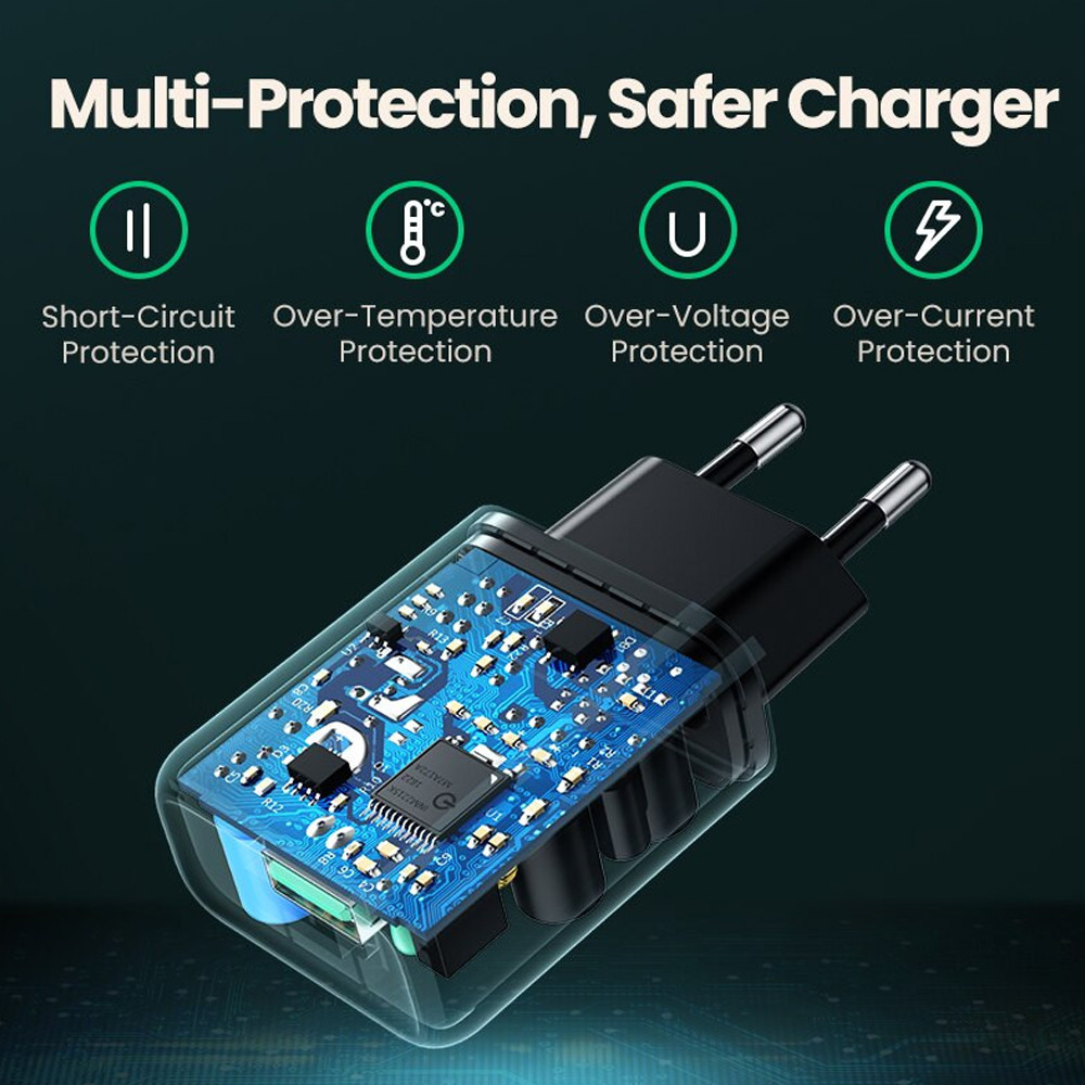 Carregador Rápido Ugreen Porta Usb A Turbo 18W Qc 3.0 Preto