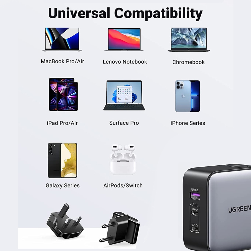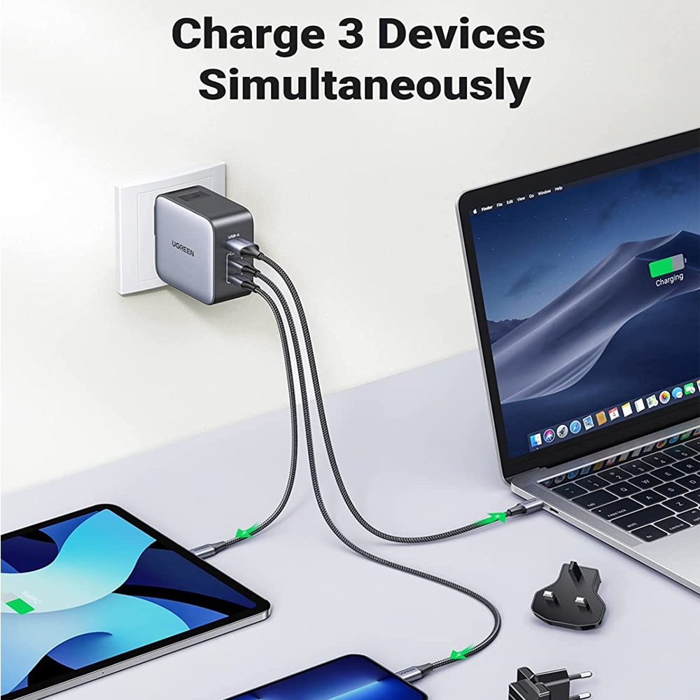 Carregador Rápido Ugreen Turbo Max. 65W 3 em 1 Usb A/C Preto