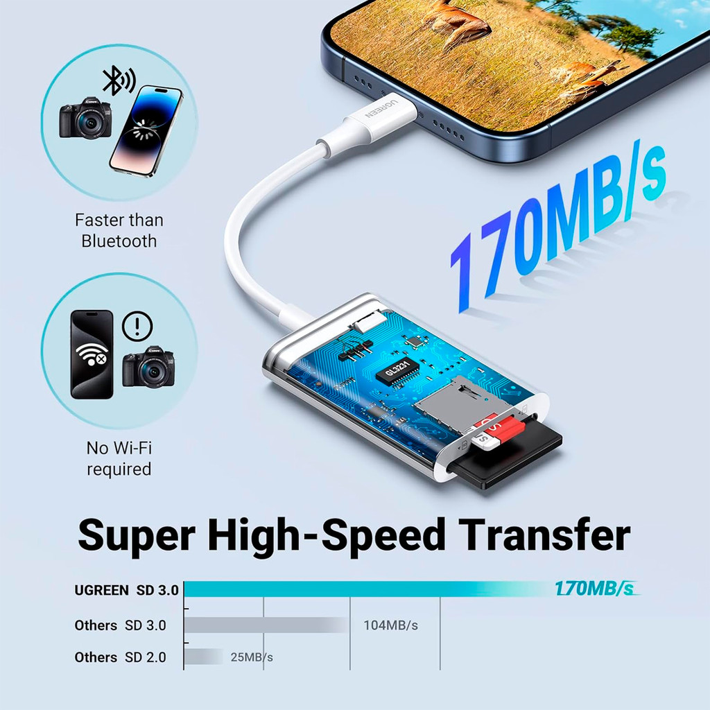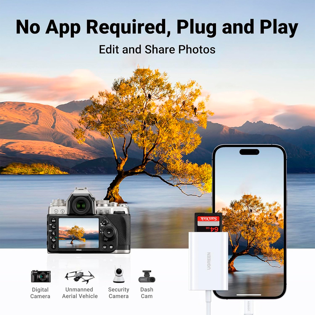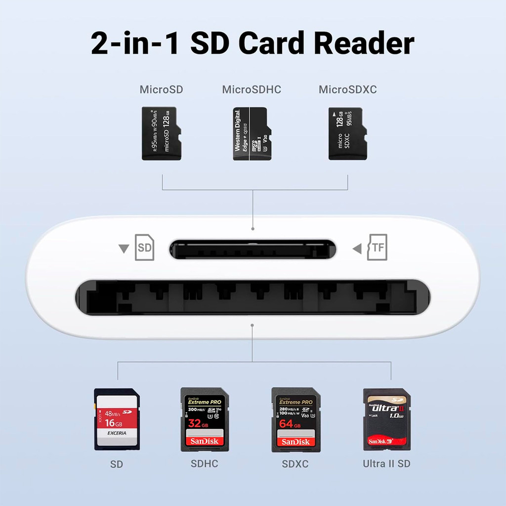 Leitor Cartão Memória Ugreen Micro e Sd p/Usb-C Branco