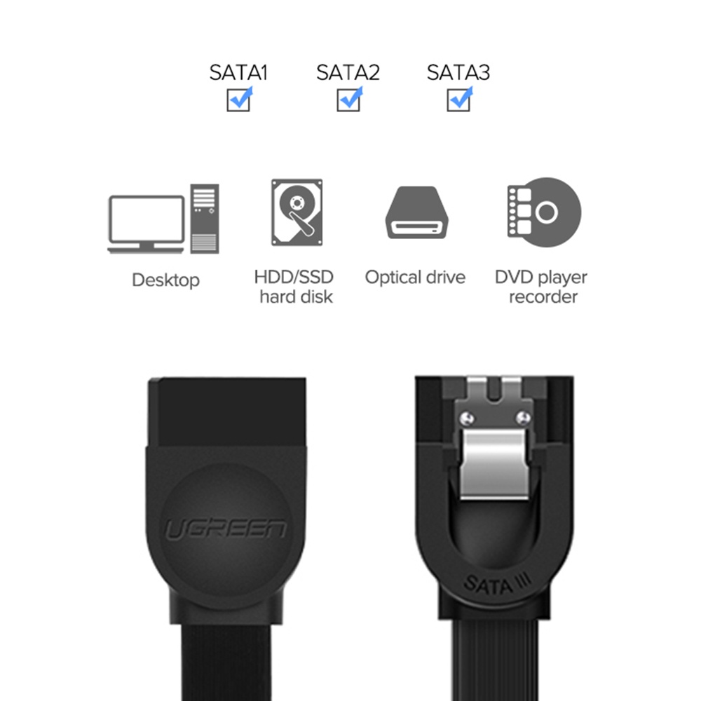 Cabo de Dados Sata3 Ugreen 6Gbps 0.5 Metros Preto