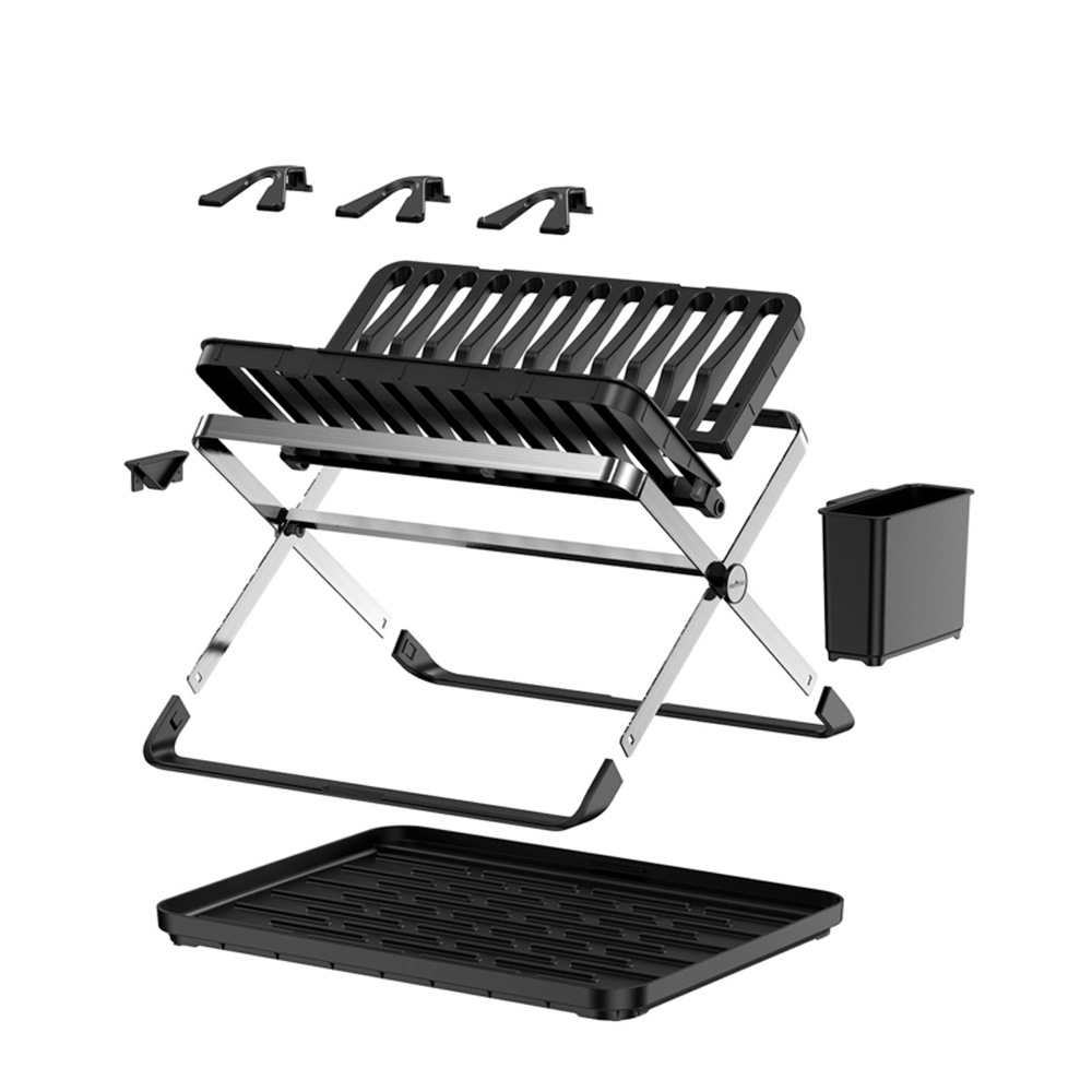 Homfel Escorredor Pratos Louça Dobrável p/Cozinha Preto