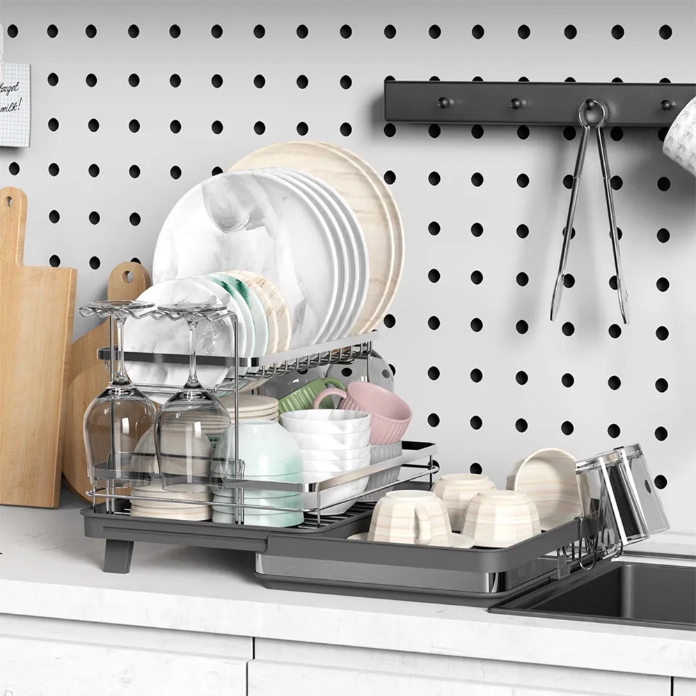 Homfel Escorredor Louça Pratos 2Camadas p/Cozinha Preto