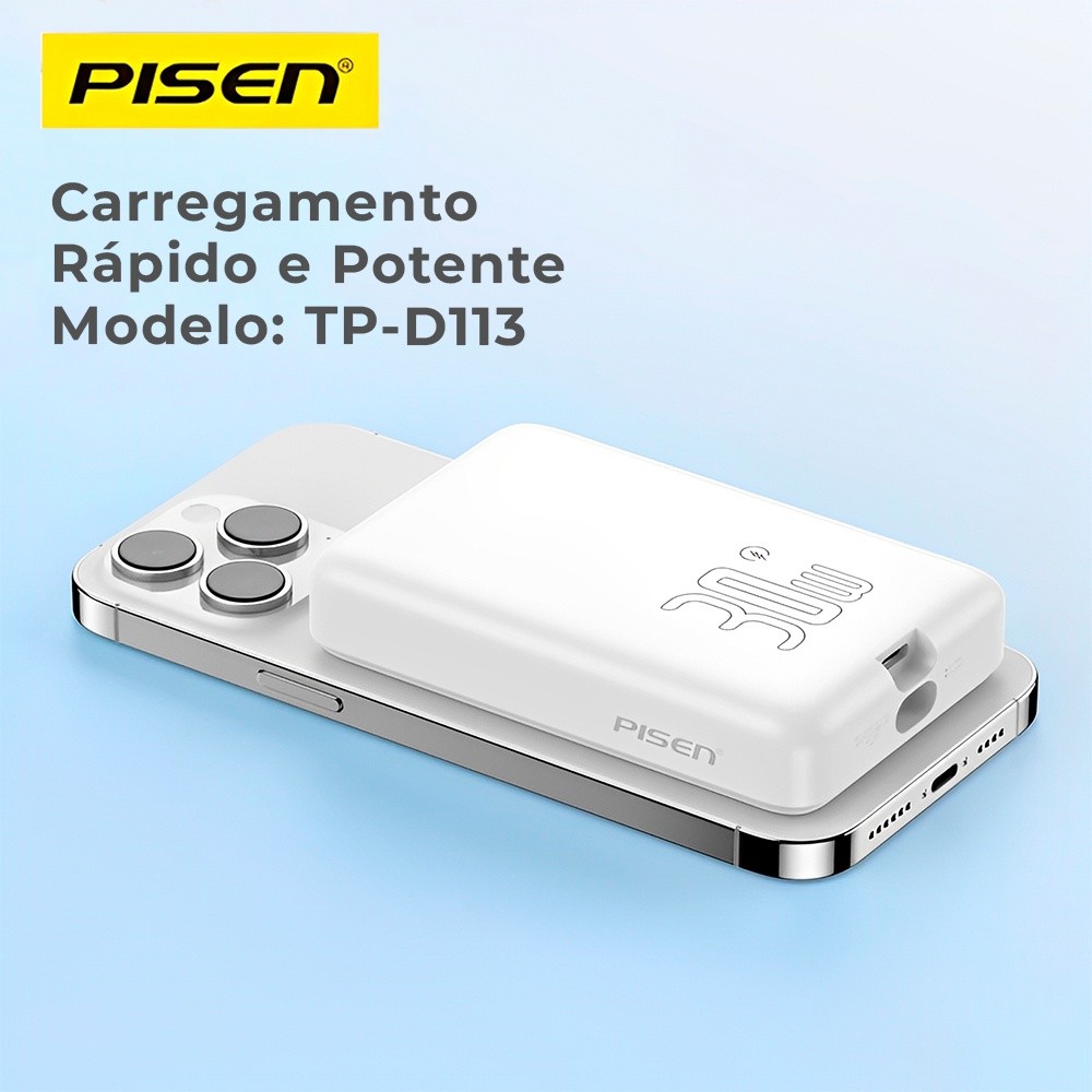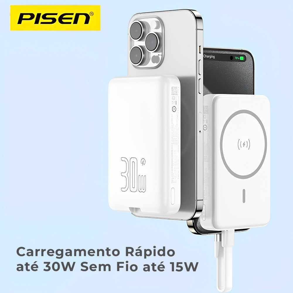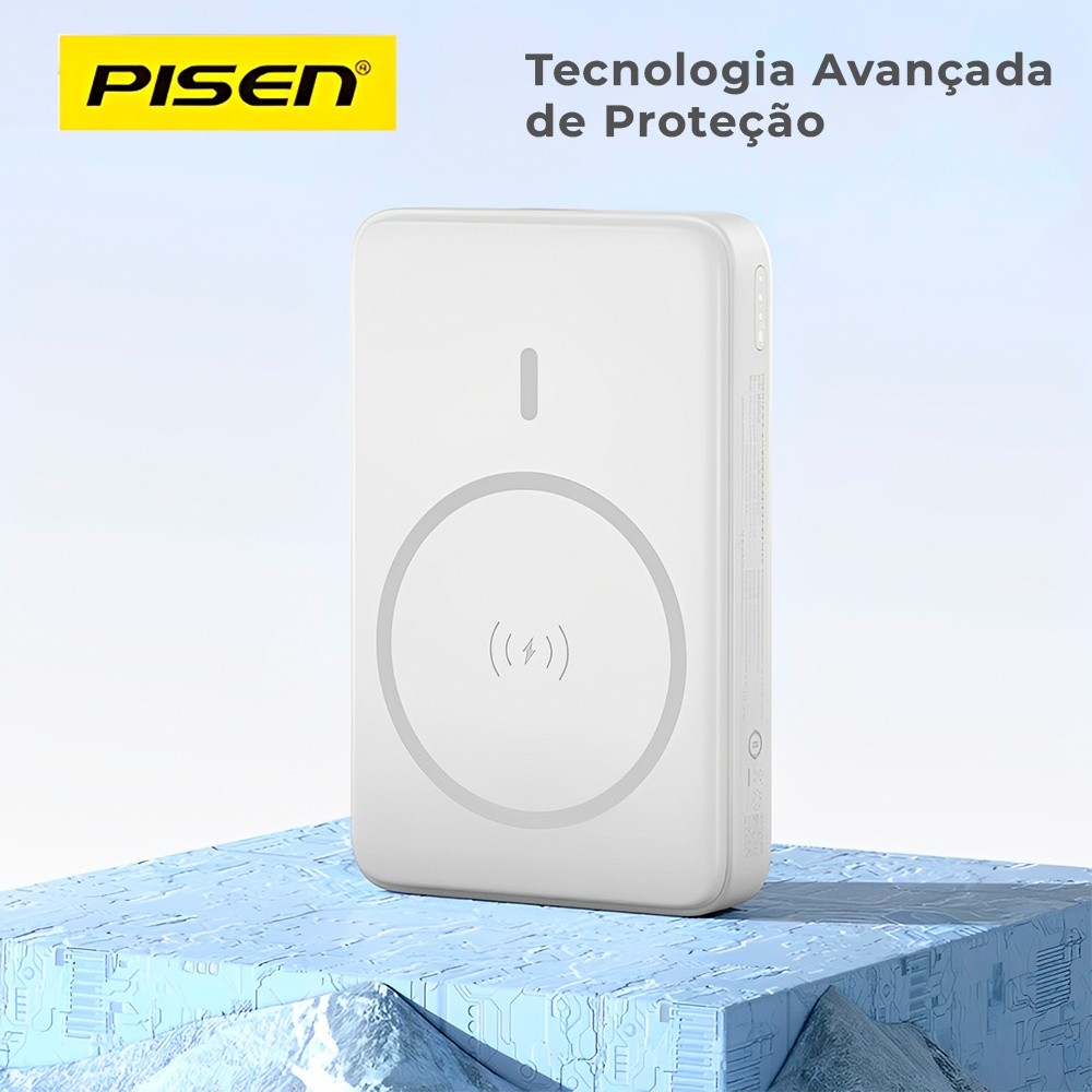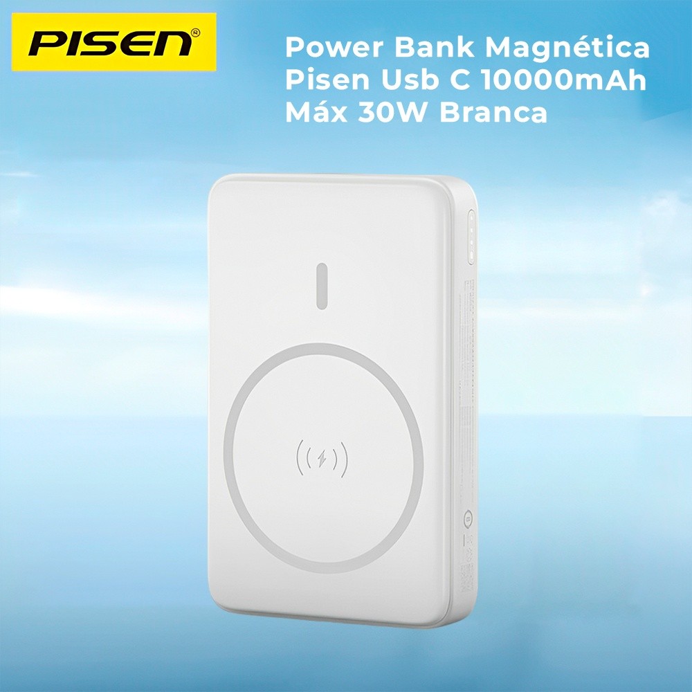 Power Bank Magnética Pisen Usb C 10000mAh Máx 30W Branca
