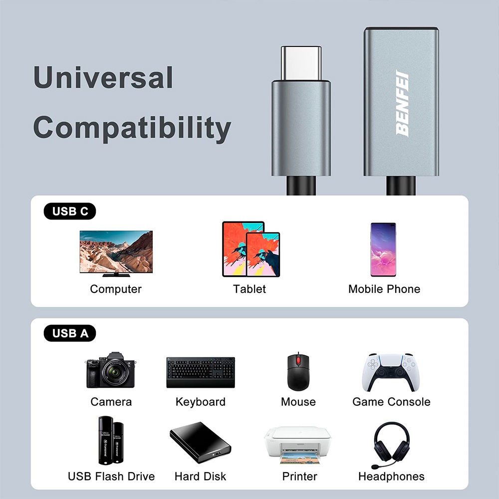 Benfei KIT 2x Adaptador Usb C p/Usb 3.0 Fêmea Cinza