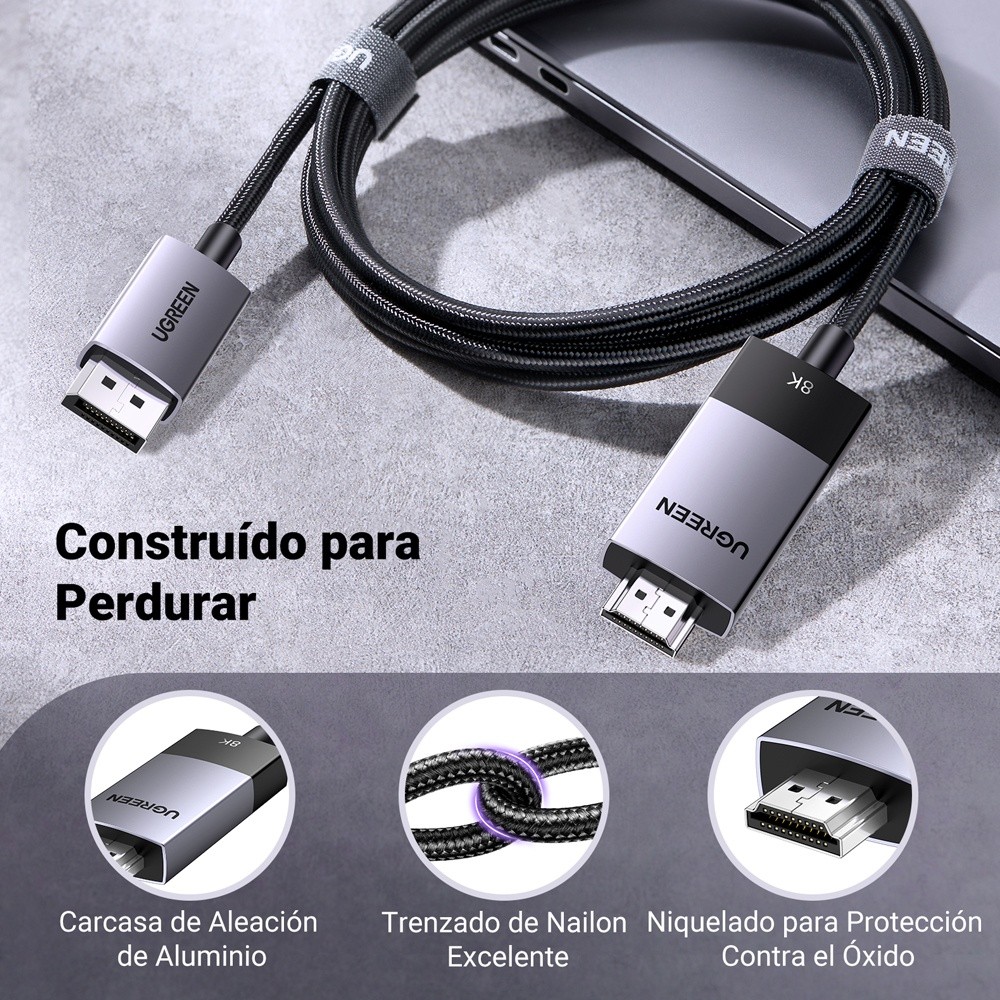 Cabo DisplayPort p/Hdmi Ugreen 8K60Hz 1Metro Preto