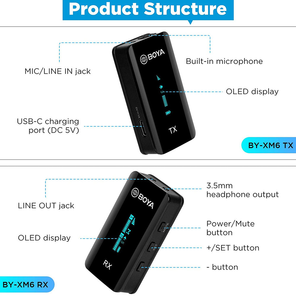 Sistema Microfone Sem Fio Boya By-xm6-s2 Canal Duplo 2.4Ghz