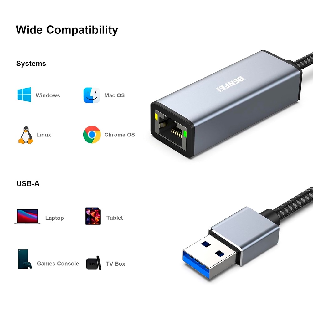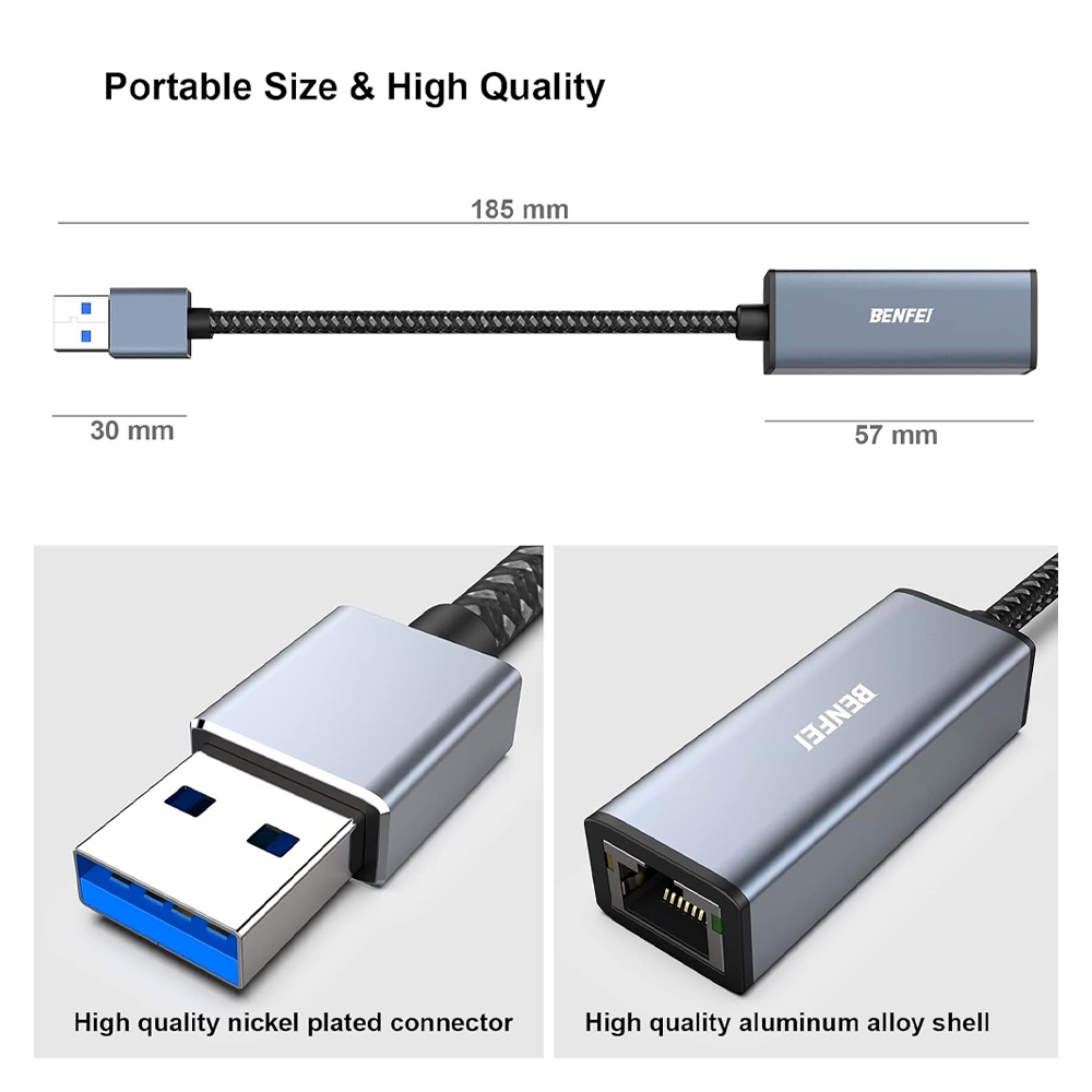 Adaptador de Rede Benfei Usb 3.0 p/RJ45 Fêmea Cinza