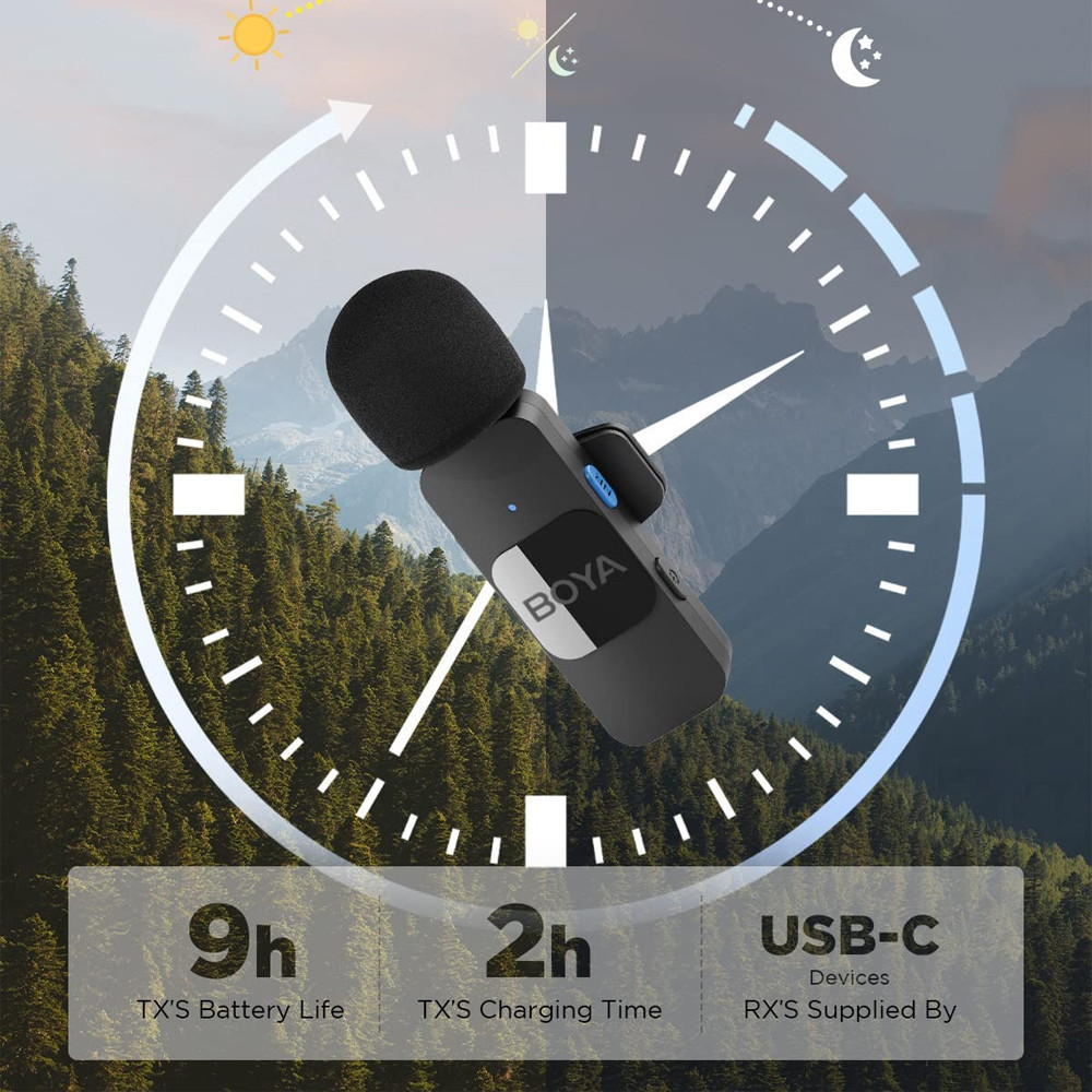 Sistema de Microfone Lapela Boya By-v20 Compatível com Dispositivo Android Porta Usb C Preto