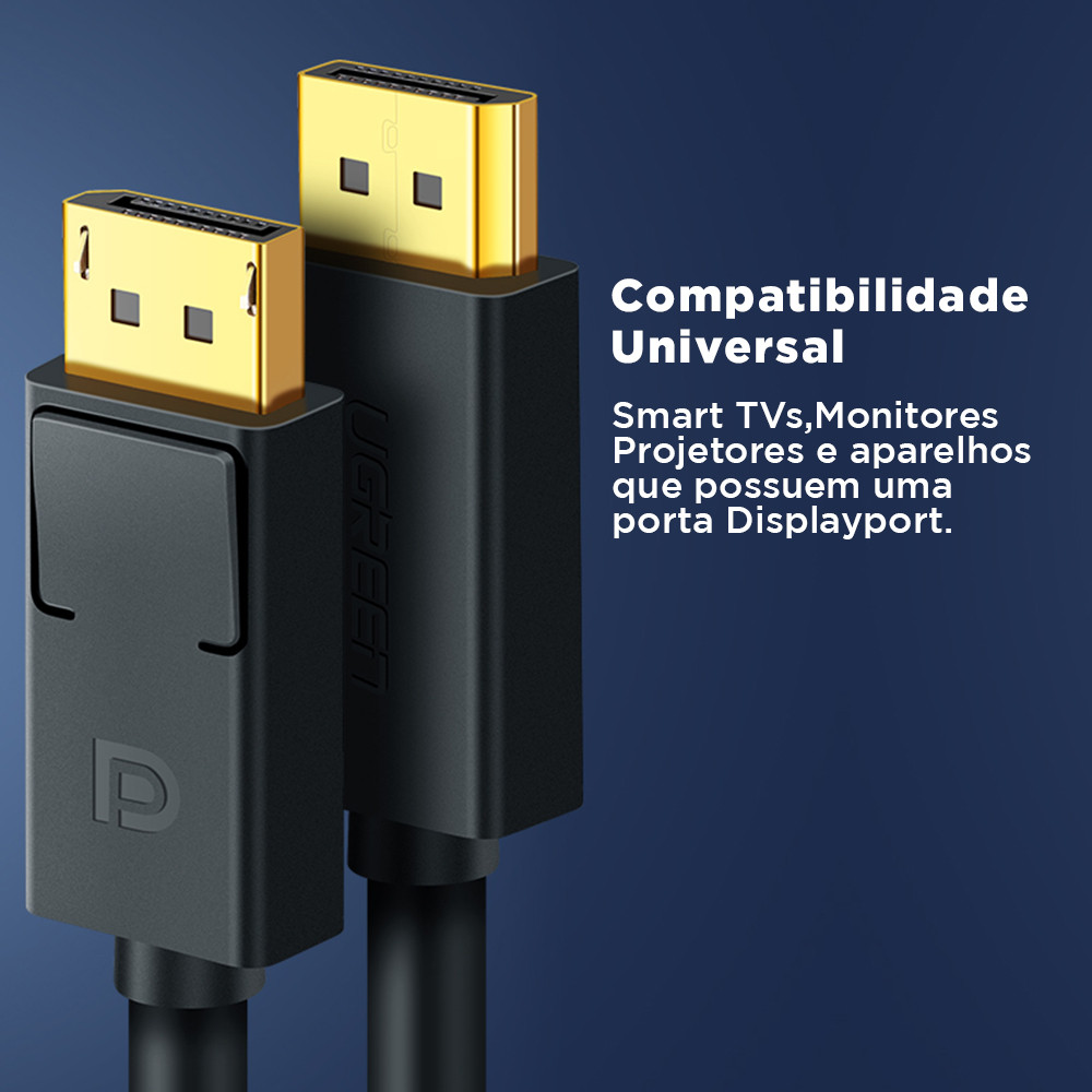 Cabo Displayport 1.2 Ugreen Macho Suporta 3D 4k/60Hz 1.5 M