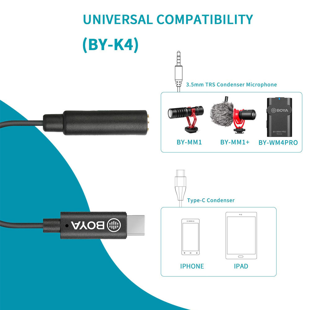Cabo Adaptador Áudio Boya By-k4 UsbC p/3.5mm Fêmea Preto