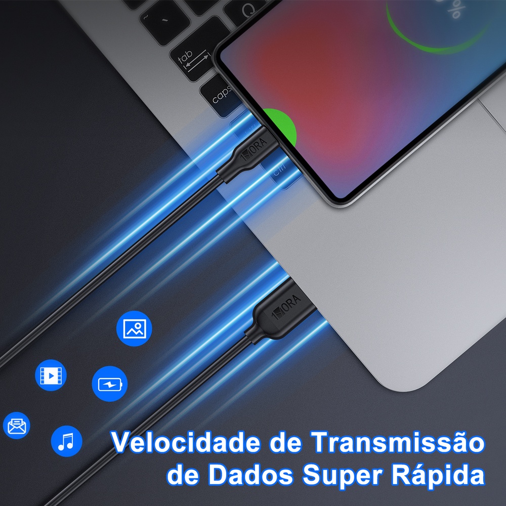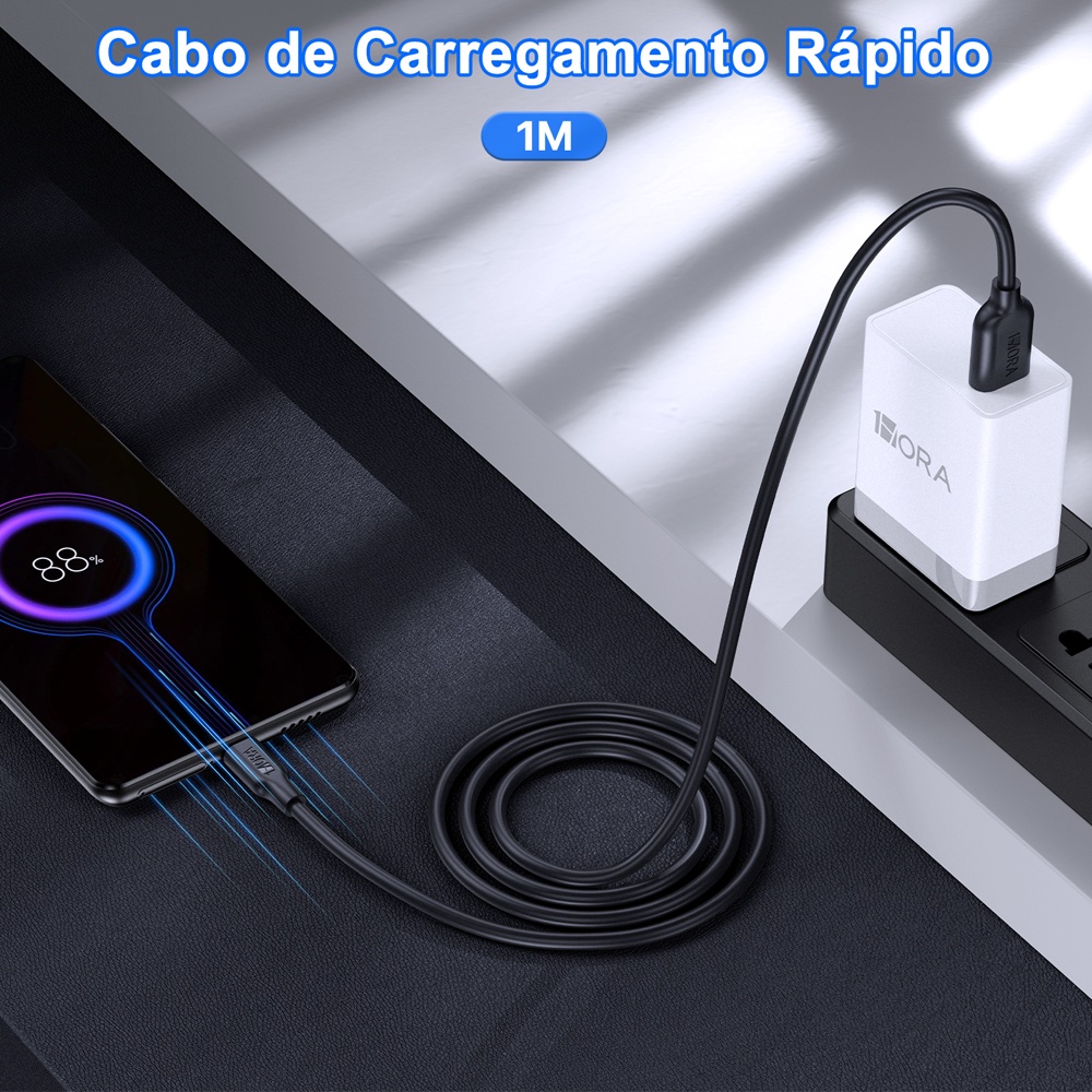 Cabo Usb C para Usb A 1Hora 2.1A Macho 1 Metro Preto