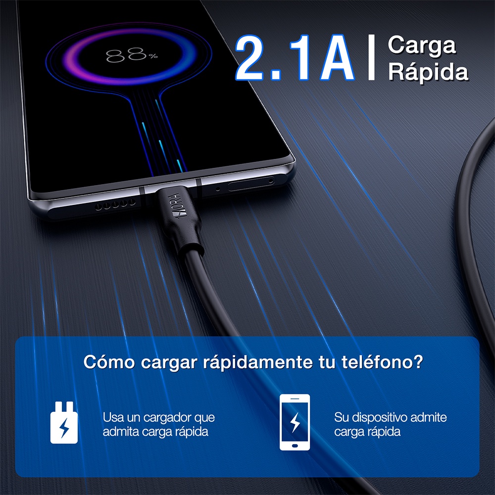 Cabo Usb C para Usb A 1Hora 2.1A Macho 2 Metros Preto