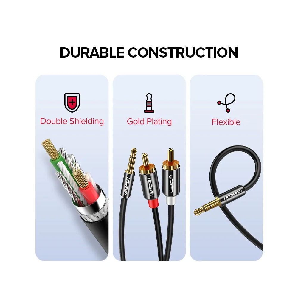 Cabo de Áudio Ugreen 3.5mm para 2Rca Macho/Macho 2 Metros Cabo de Áudio Auxiliar
