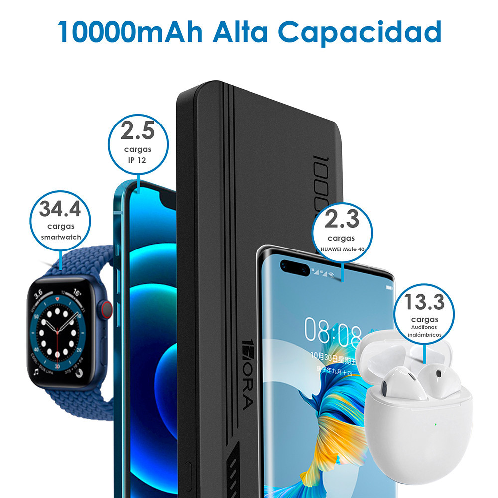 Carregador Portátil 1 Hora Power Bank 10000mAh Preto