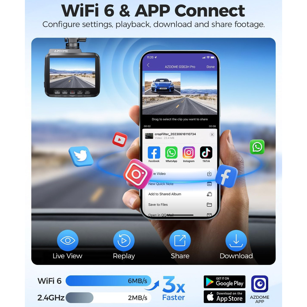 Câmera Painel Azdome 4K 1080P Wi-Fi Frente e Traseira