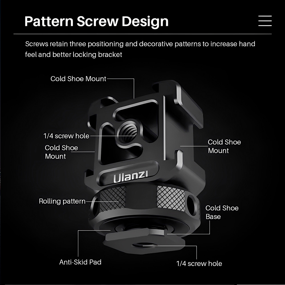 Suporte Triplo Cold Shoe Ulanzi PT-12 Alumínio p/Câmeras