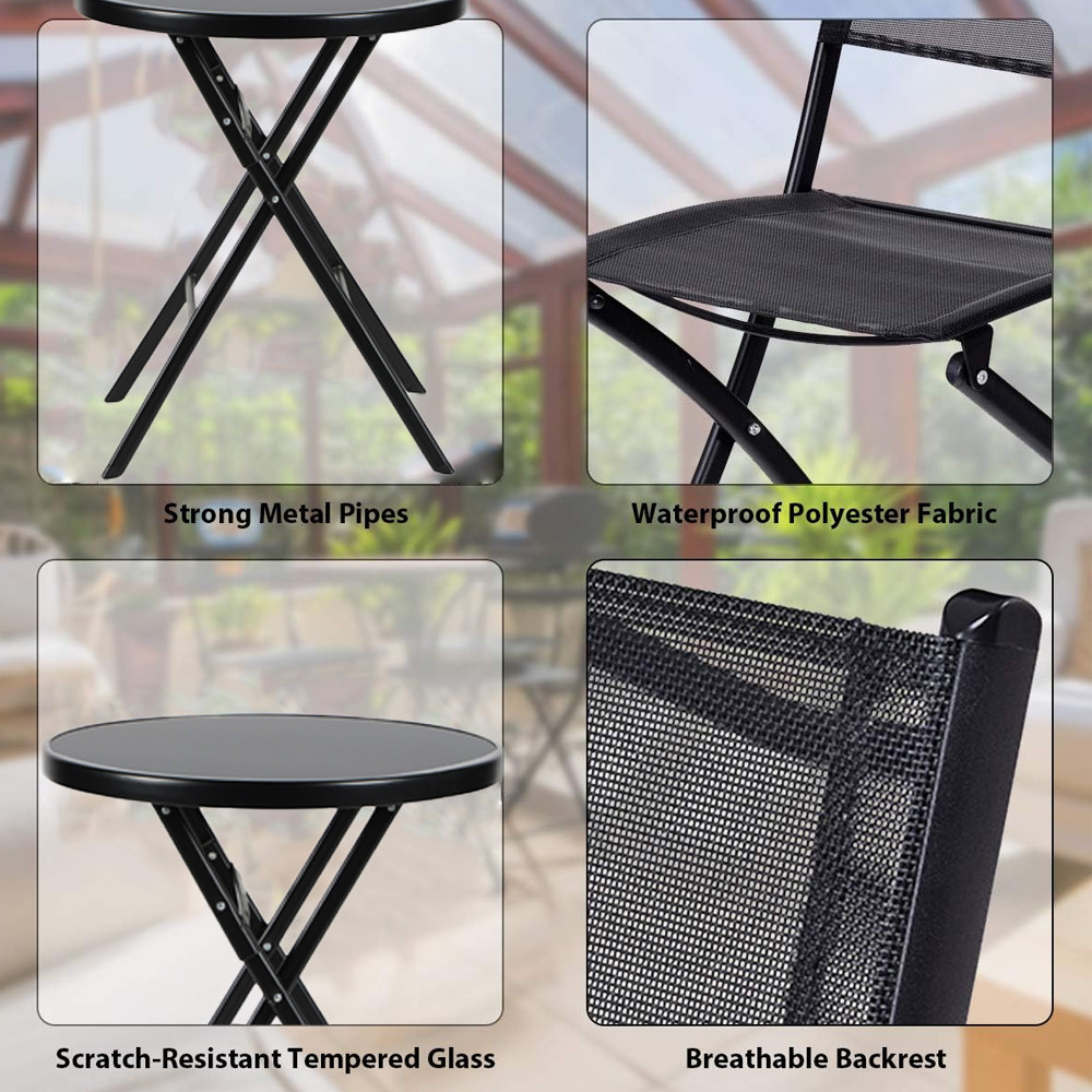 Mesa Jantar Vidro Redonda Life com 2 Cadeiras Dobráveis