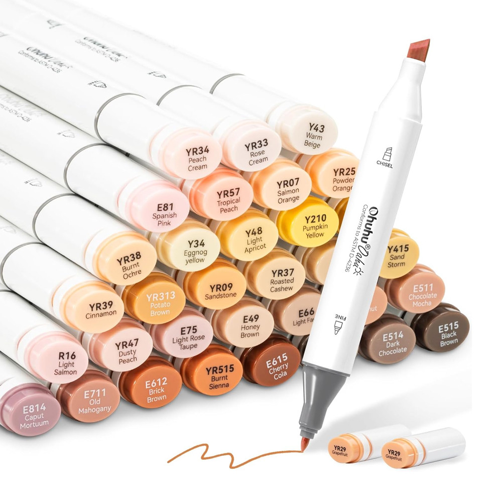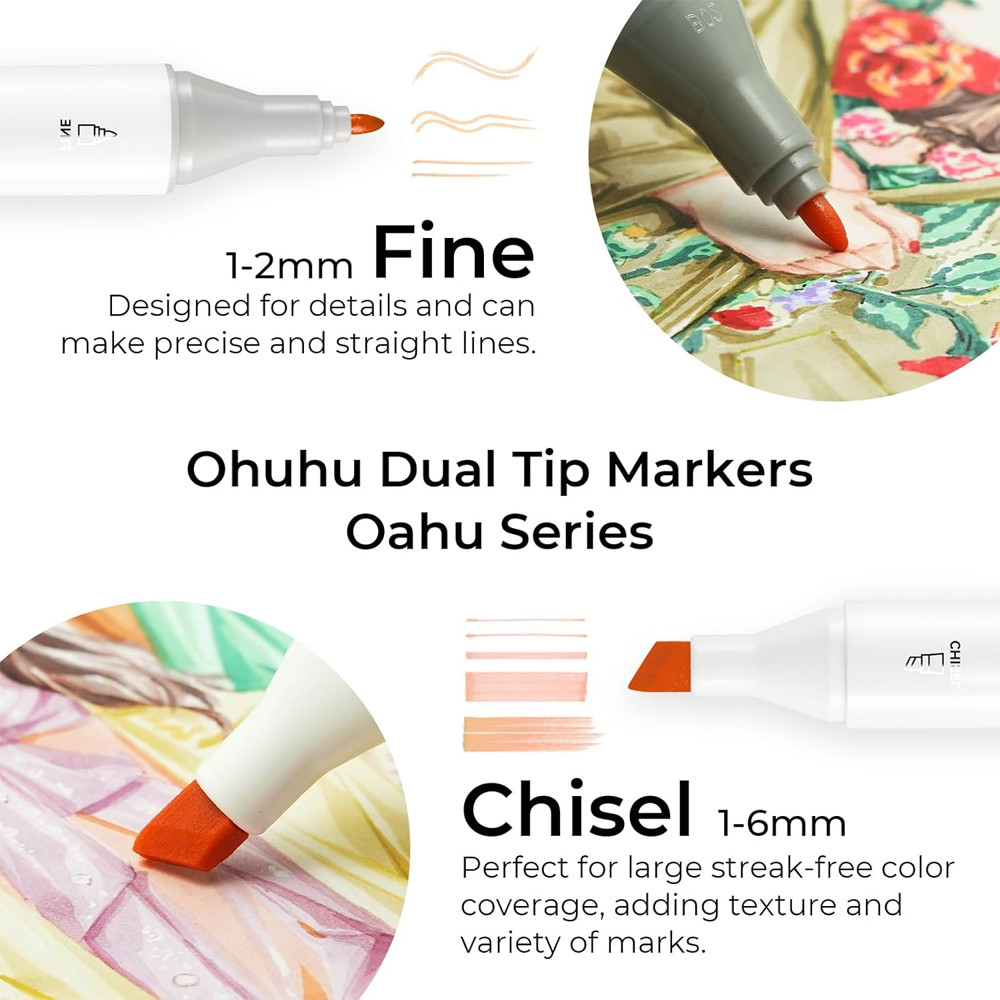 Ohuhu Oahu 36 Cores Marcadores Arte Ponta Dupla Pele