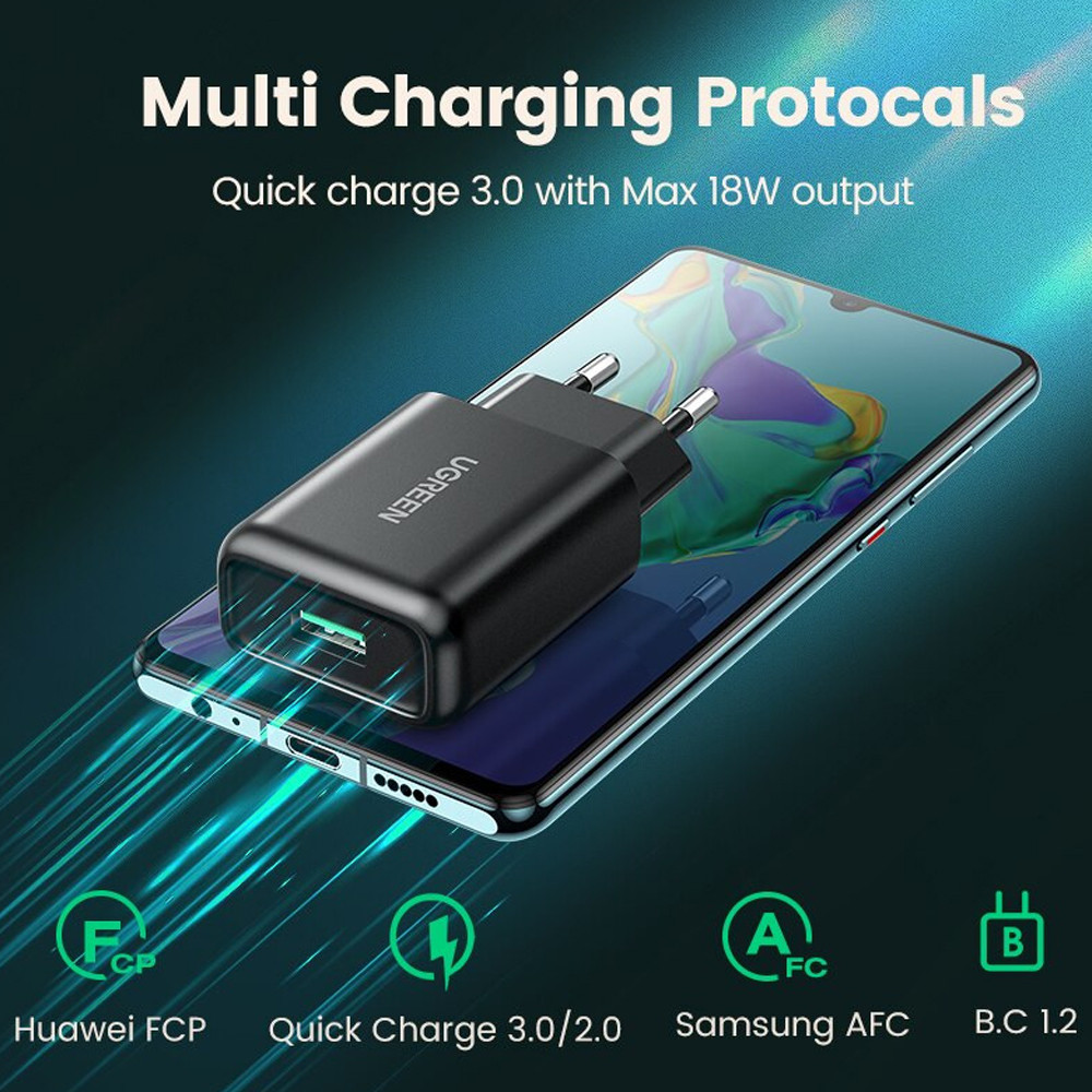 Carregador Usb Ugreen Usb A Max. 18W Preto + Cabo Usb A/C (K-5329-5882)