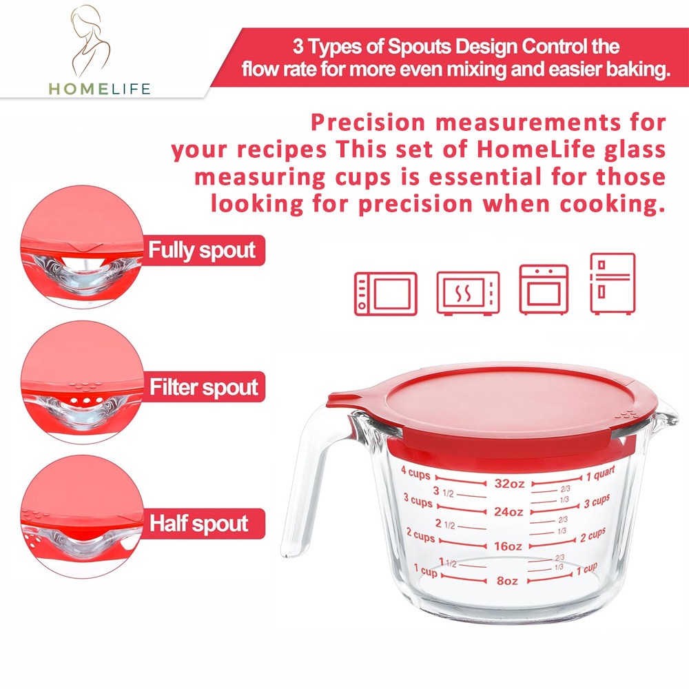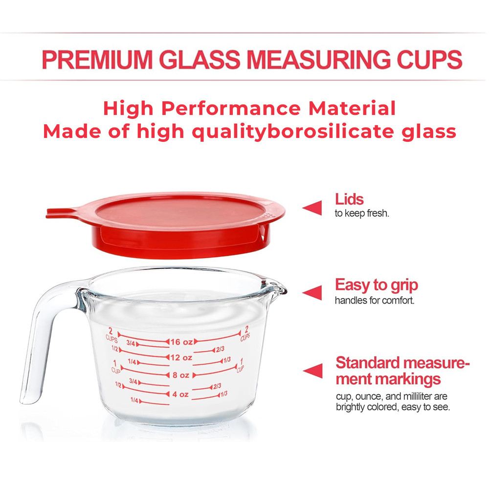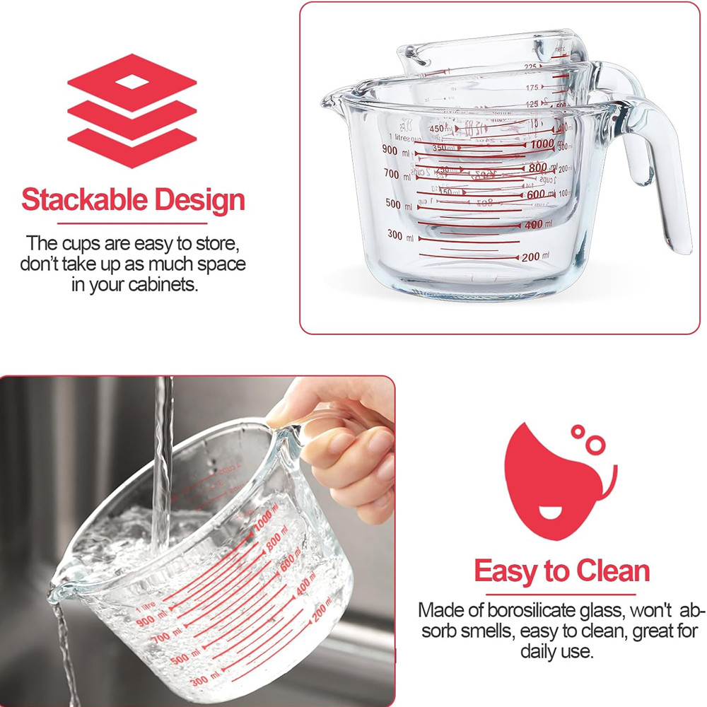 Conjunto de 3 Copos Vidro Medidores Life 250, 500ml, 1L