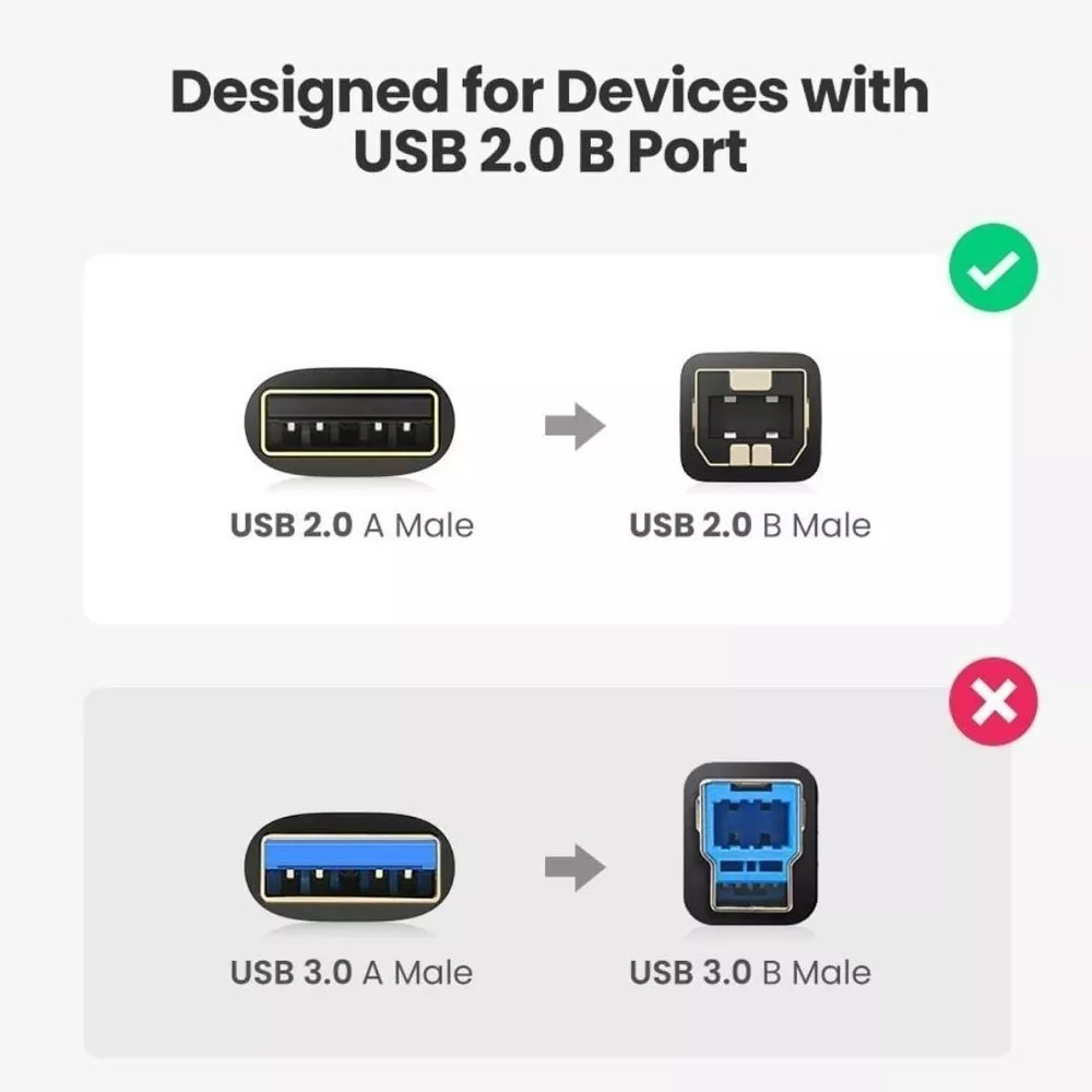Cabo Impressora Usb 2.0 Ugreen Tipo A para Tipo B 3Metro 2 Unidades