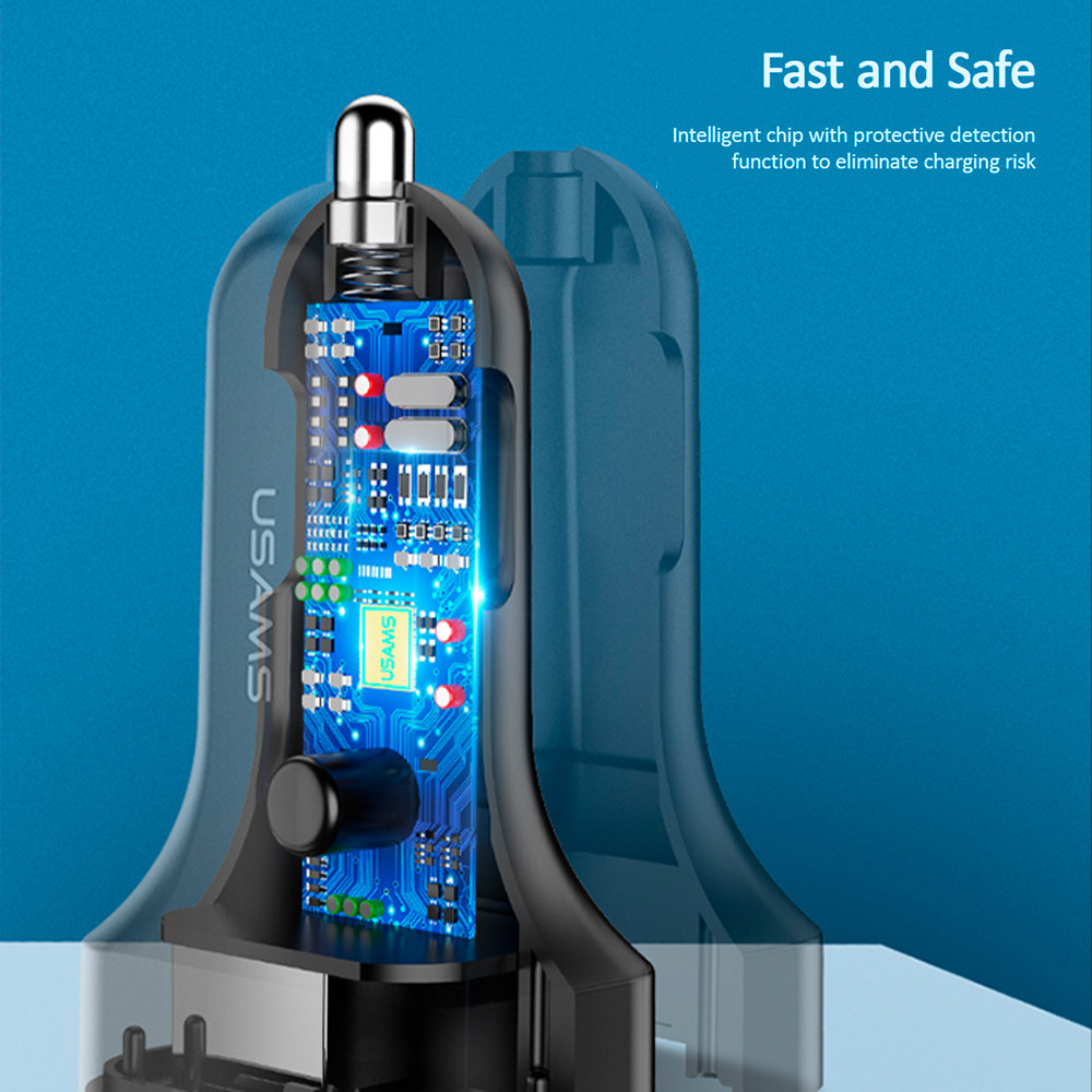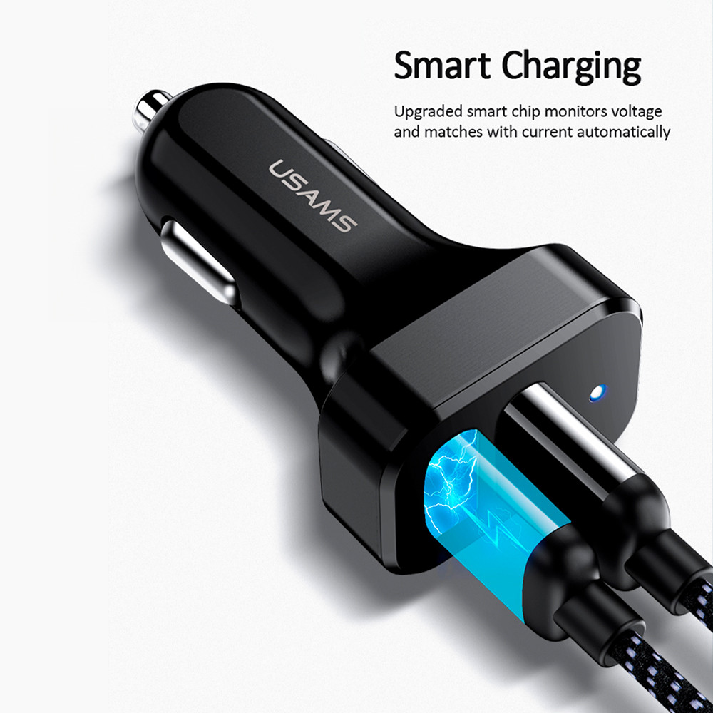 Carregador Veicular Usams Máx. 2.1A 2x Porta Usb A Preto