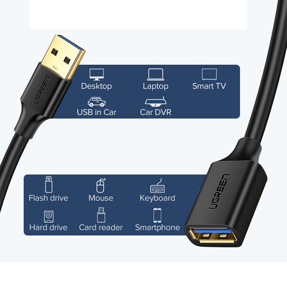 Cabo Extensor Usb 3.0 Ugreen Macho Fêmea 3M +Cabo USB-C (K-4306-5882)