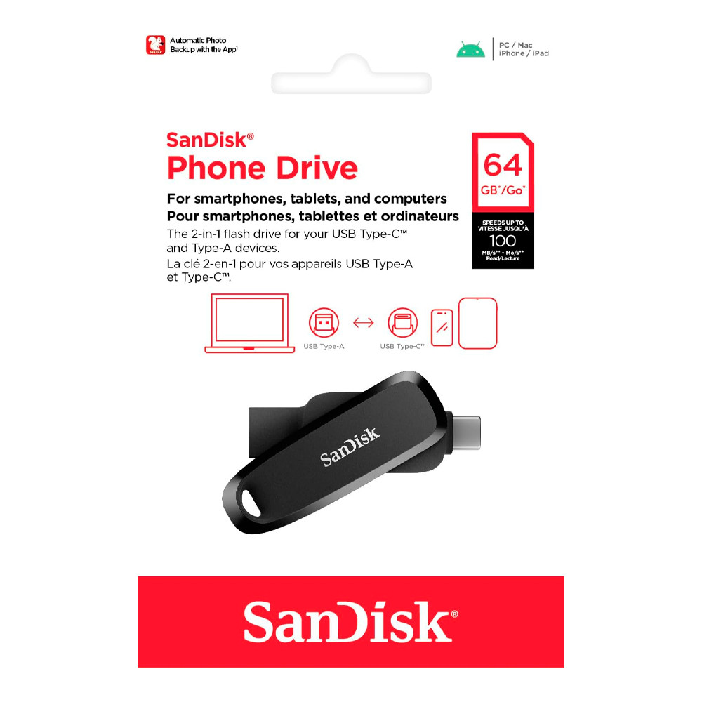 Pen Drive Sandisk 64gb Usb A/C 3.2 Gen 1 100Mbs Preto