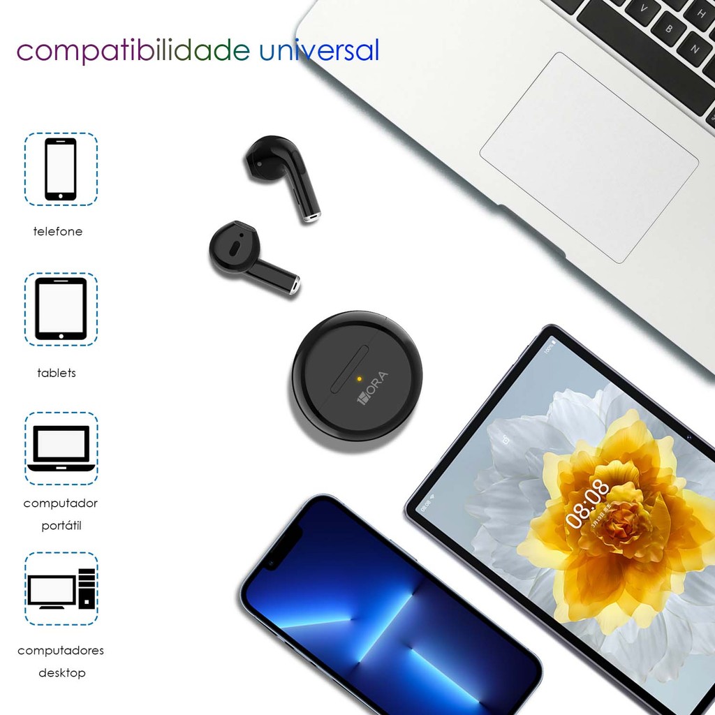 Fone de Ouvido Sem Fio 1HoraAut203 Bluetooth 5.1 Preto