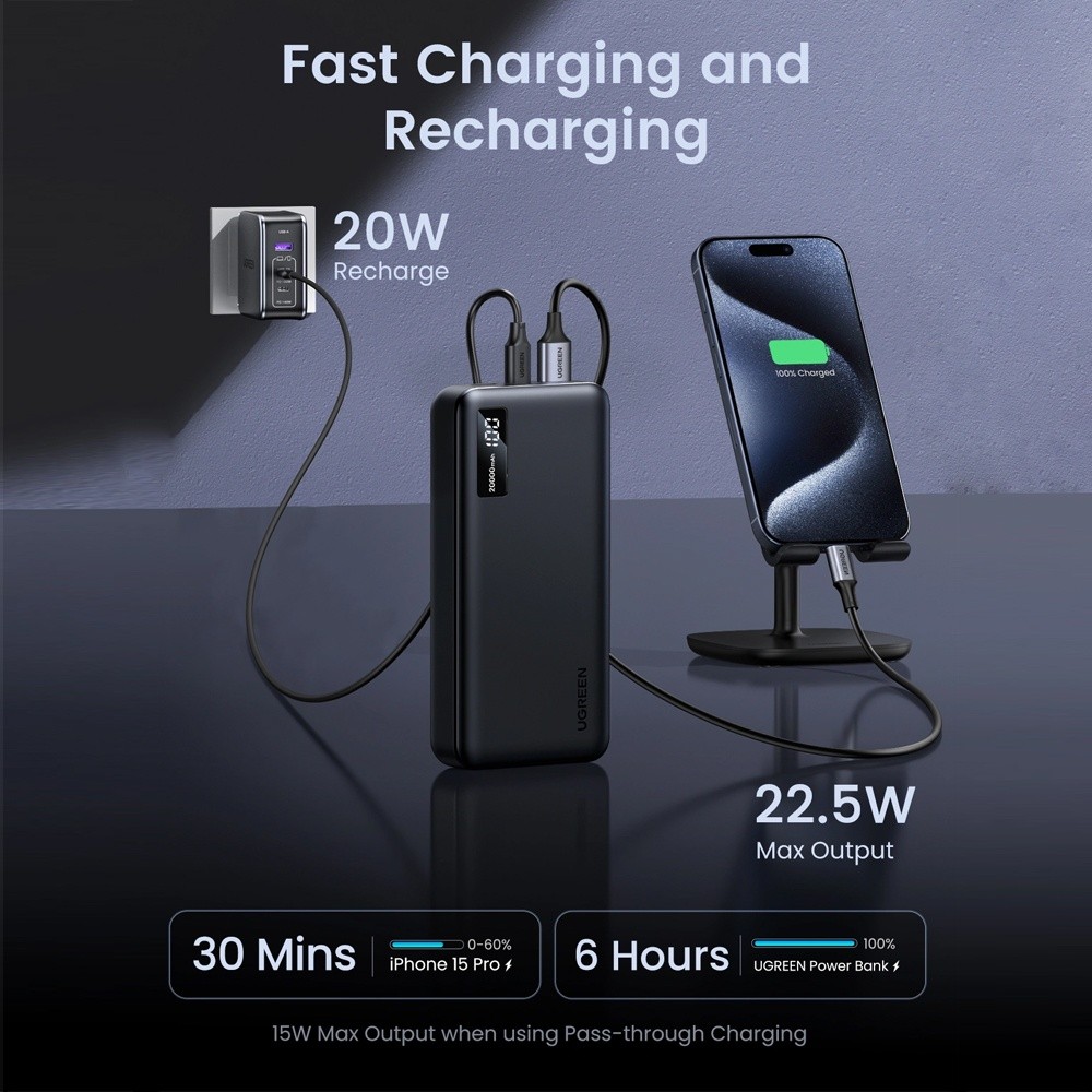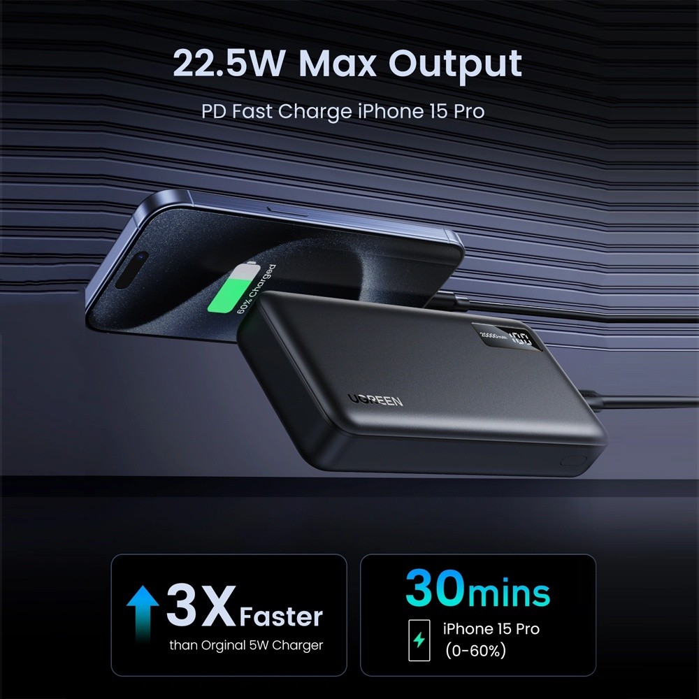 Power Bank 20000mAh Ugreen Usb A/C Máx. 22.5W Preta