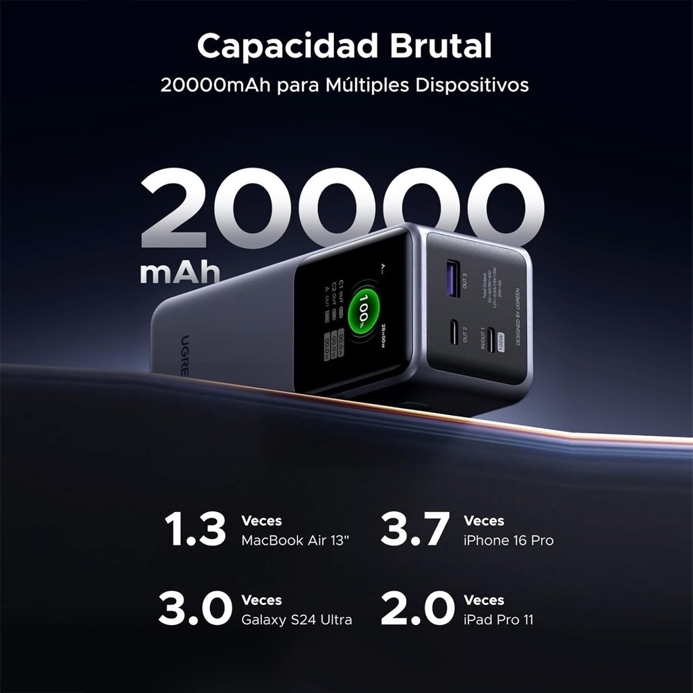 Power Bank Usb A/C Ugreen Nexode 20000mAh 130W Cinza