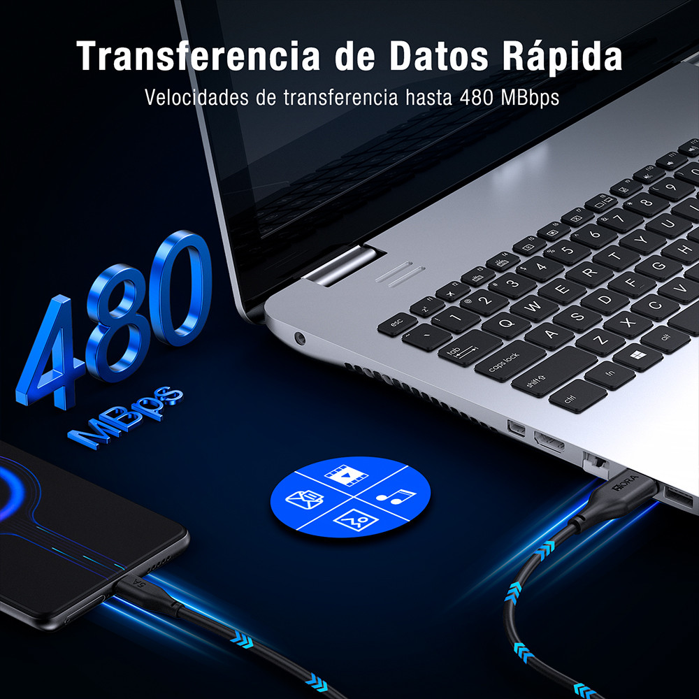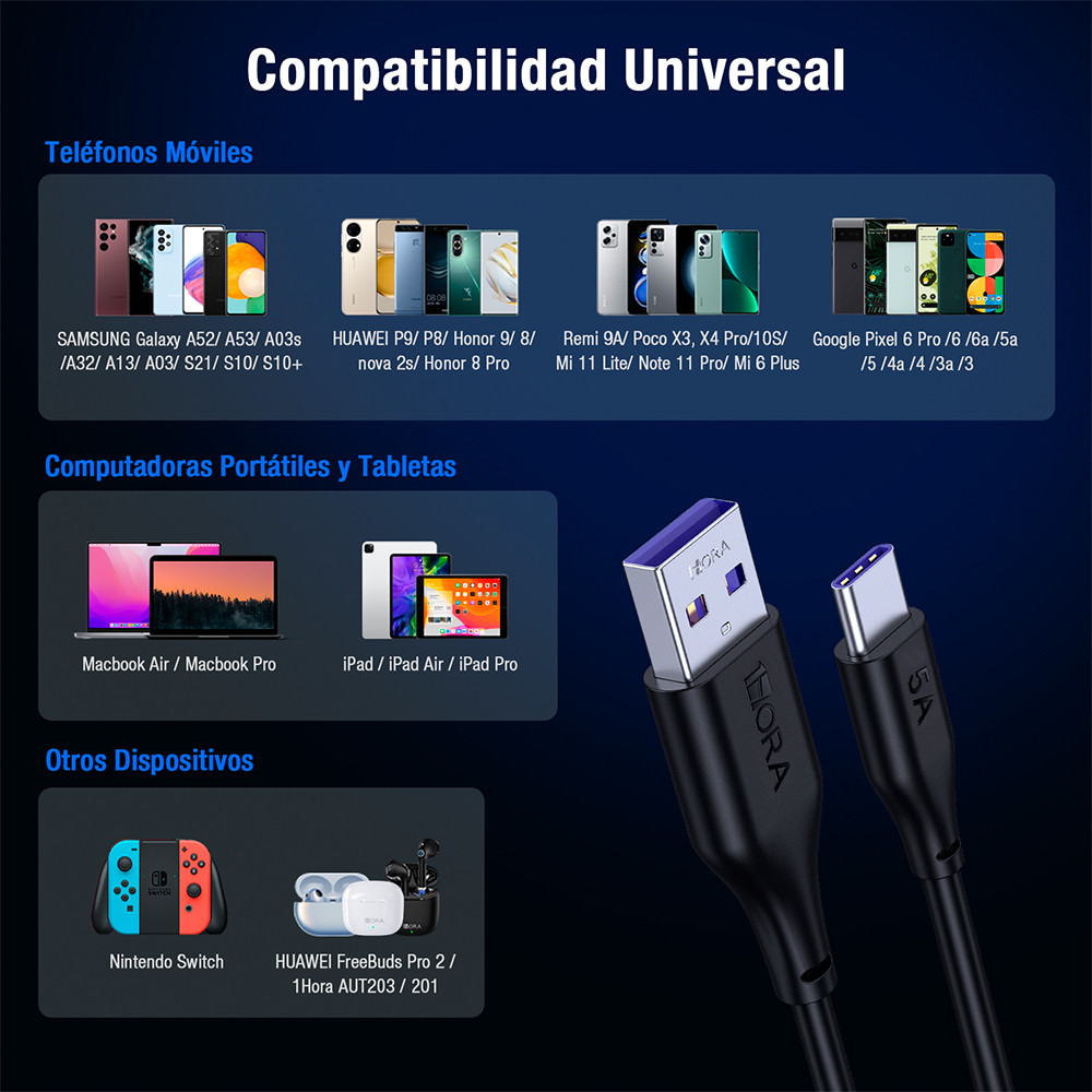 Cabo de Carregamento 1Hora Usb 2.0 A/C 5A Macho 2M Preto