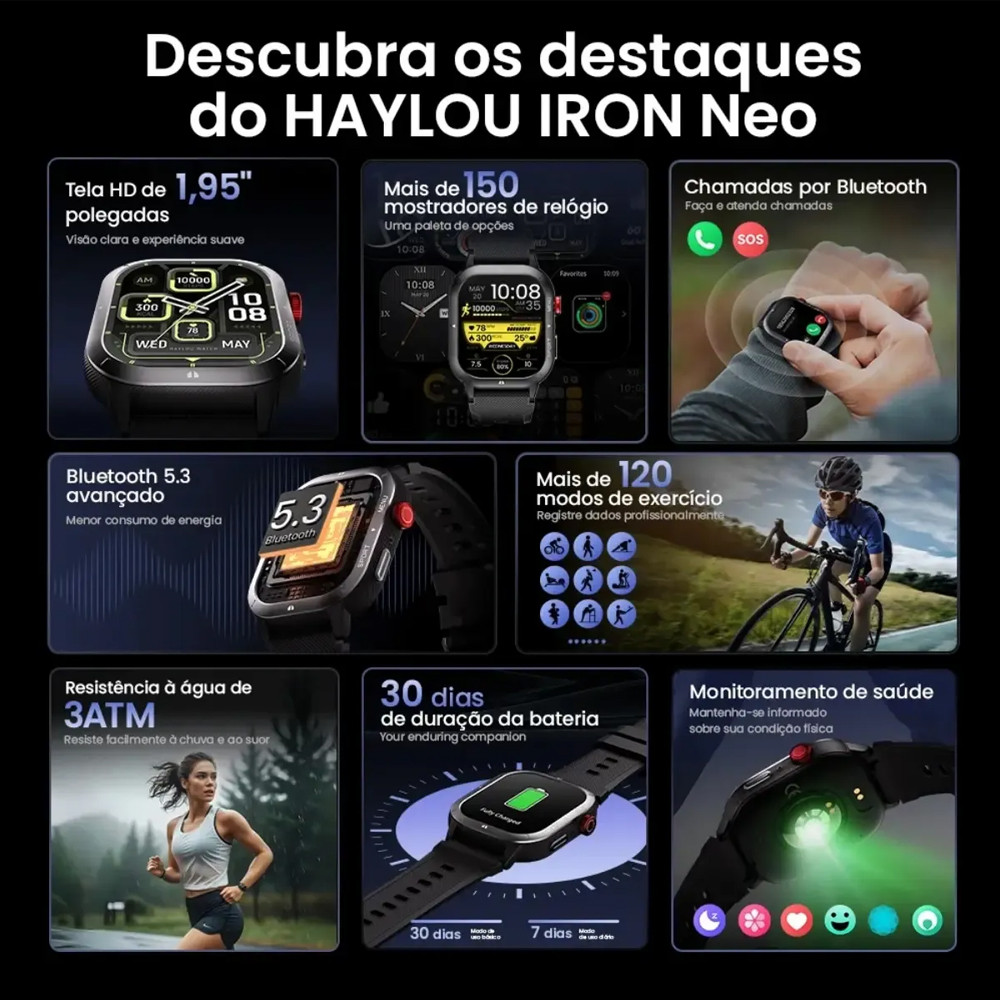 Haylou Iron Neo Relógio Smart 1,95" Chamadas Bluetooth