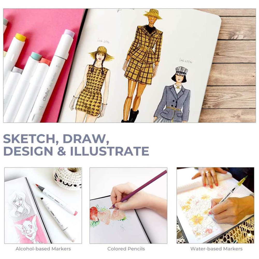Bloco Desenho Artístico Ohuhu Marcador Arte 30 Folhas