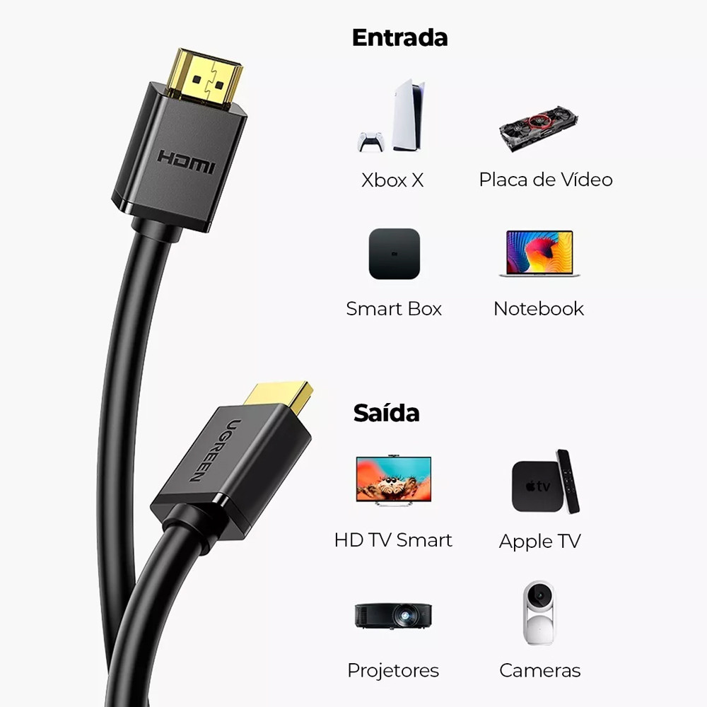 Cabo Hdmi Ugreen 3 Metros 4k 3D Alta Velocidade e Qualidade