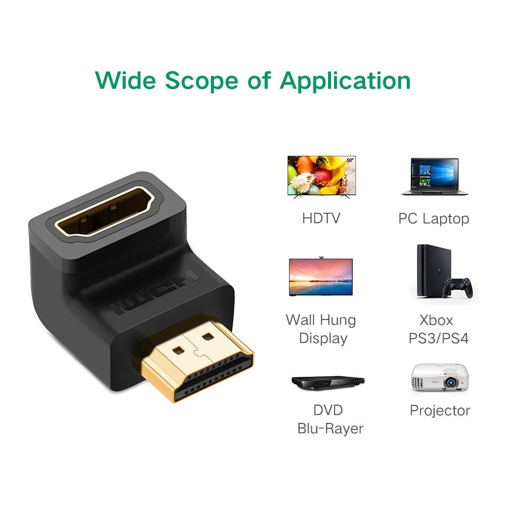 Adaptador de Vídeo Ugreen Hdmi Macho/Fêmea 90 Graus Preto