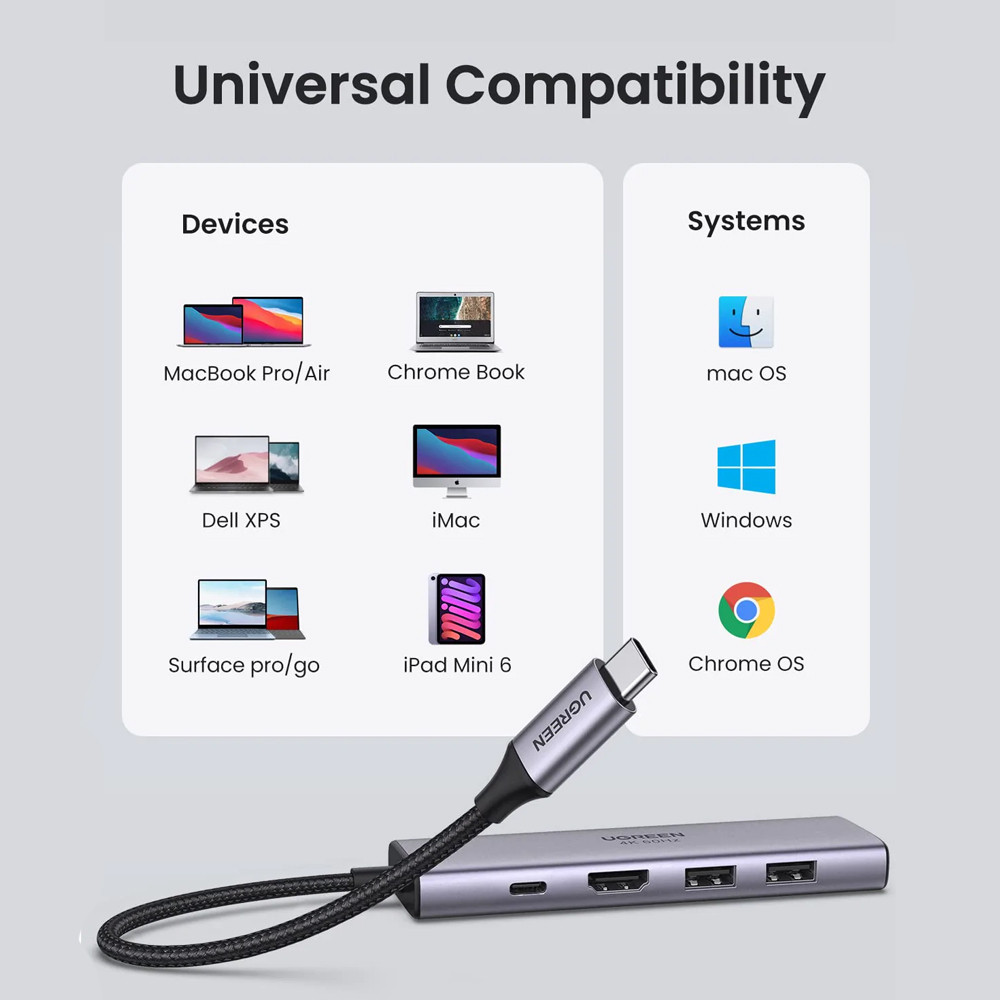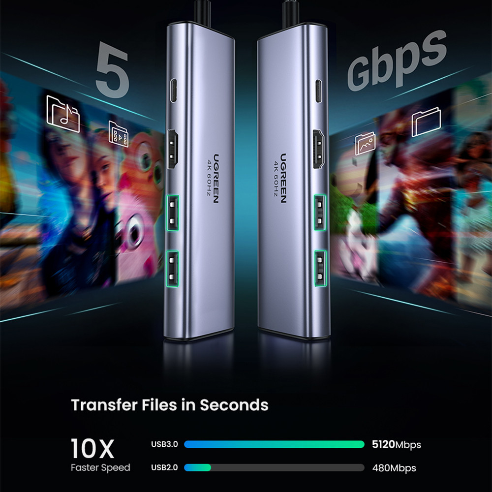 Hub Usb C 3.0 Ugreen Adaptador Multi Portas 6 em 1 4k/60Hz (K-4720-5882)