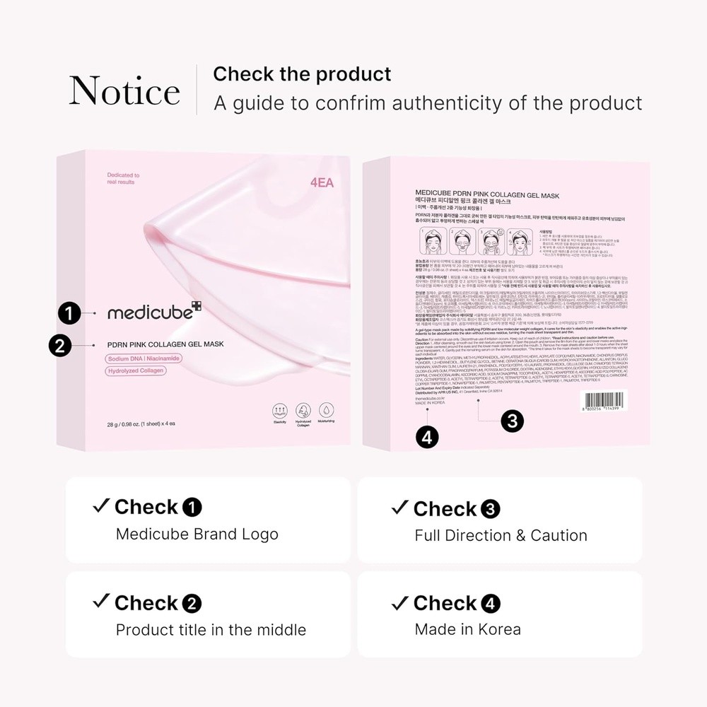 Máscara Colágeno Medicube PDRN Rosa Hidratante Coreana 4un