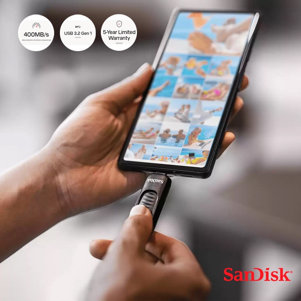 Pen Drive Sandisk 128gb Usb C 3.2 Ultra Slider Preto