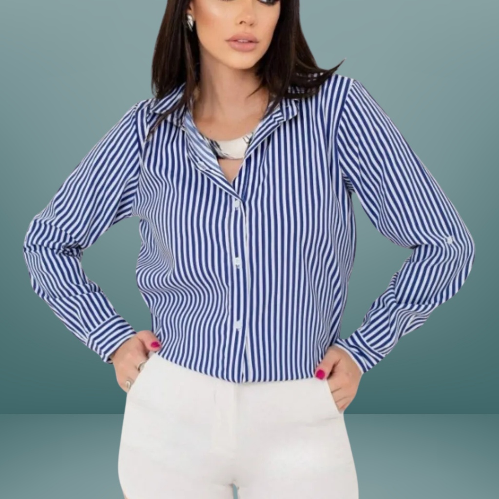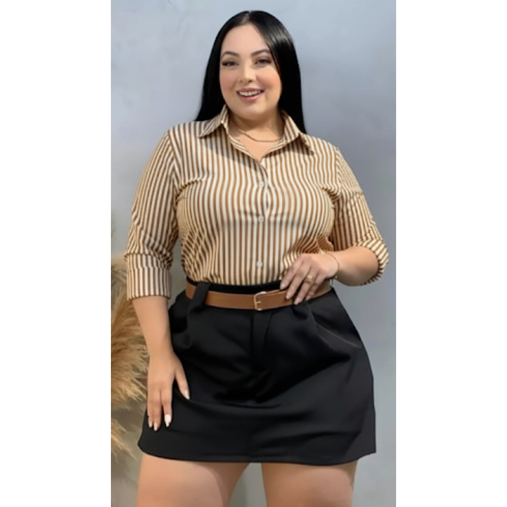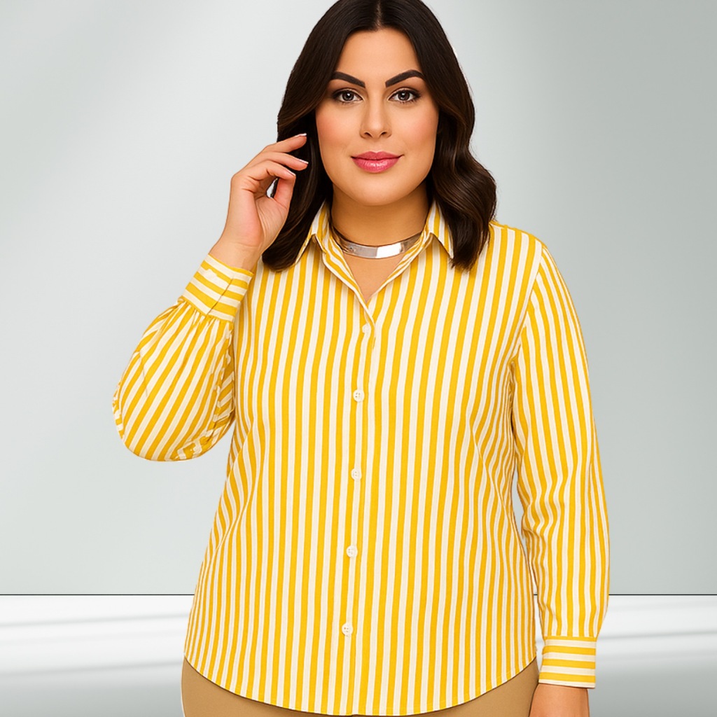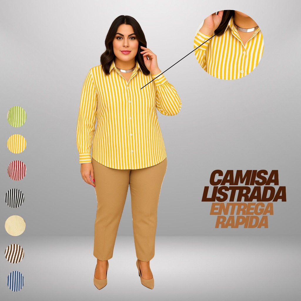 Camisa Listrada Social Amarelo Botão Frontal PP ao G3 Manga longa