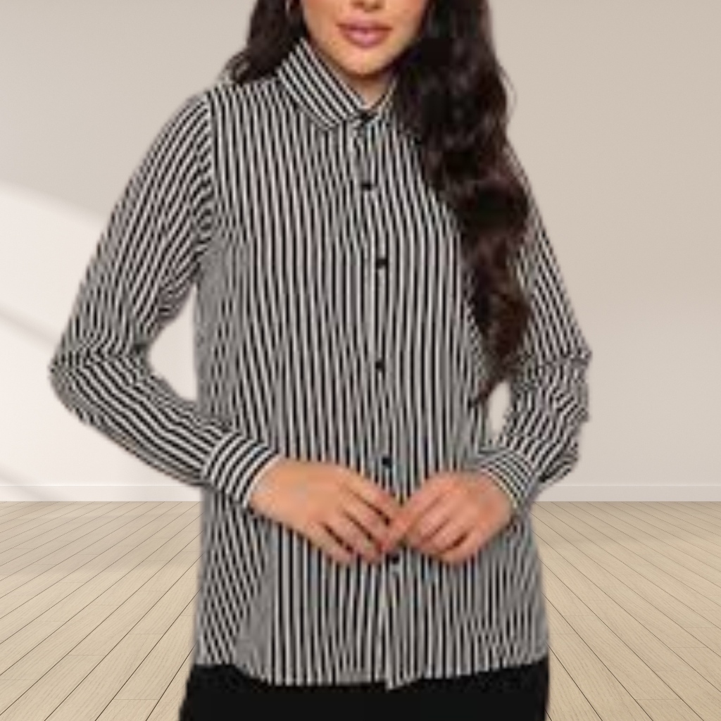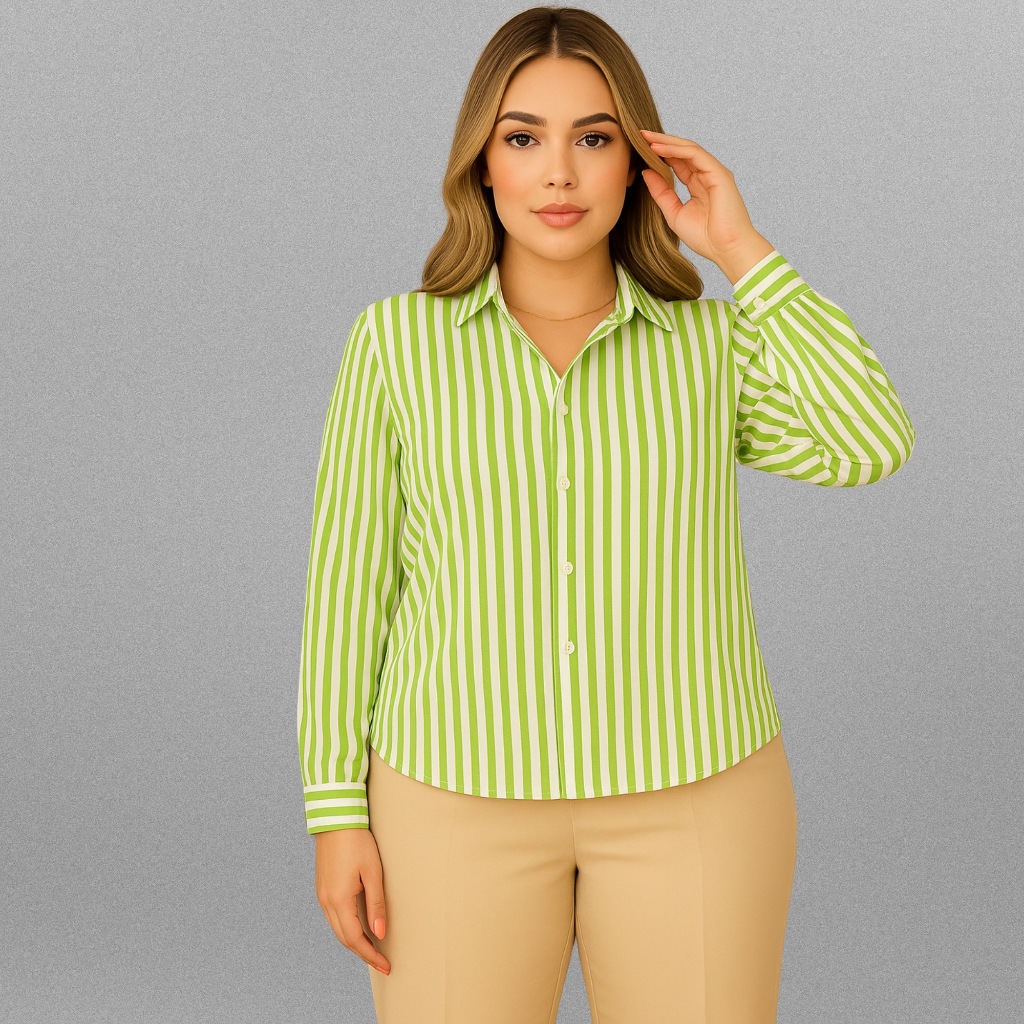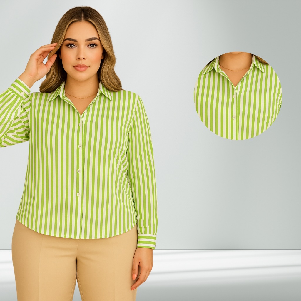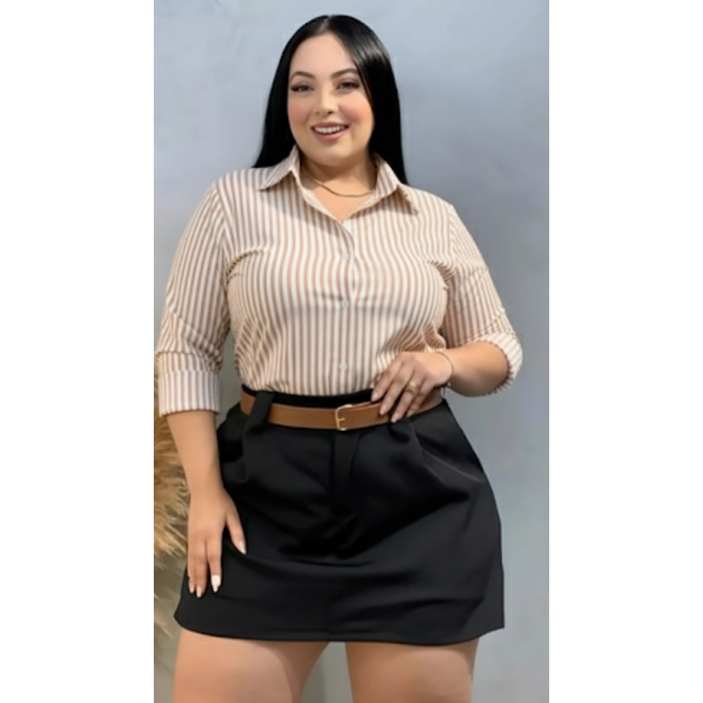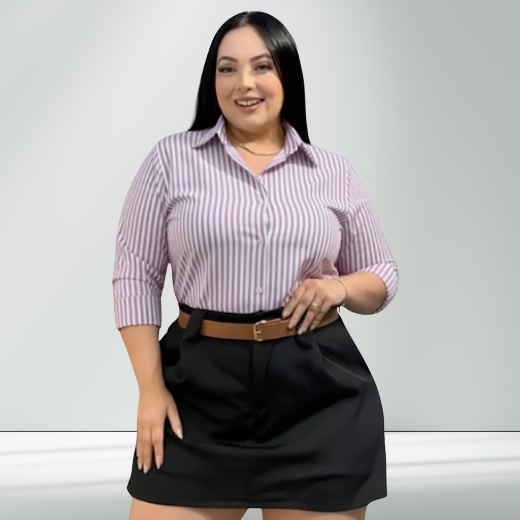Camisa Listrada Social Amarelo Botão Frontal PP ao G3 Manga longa