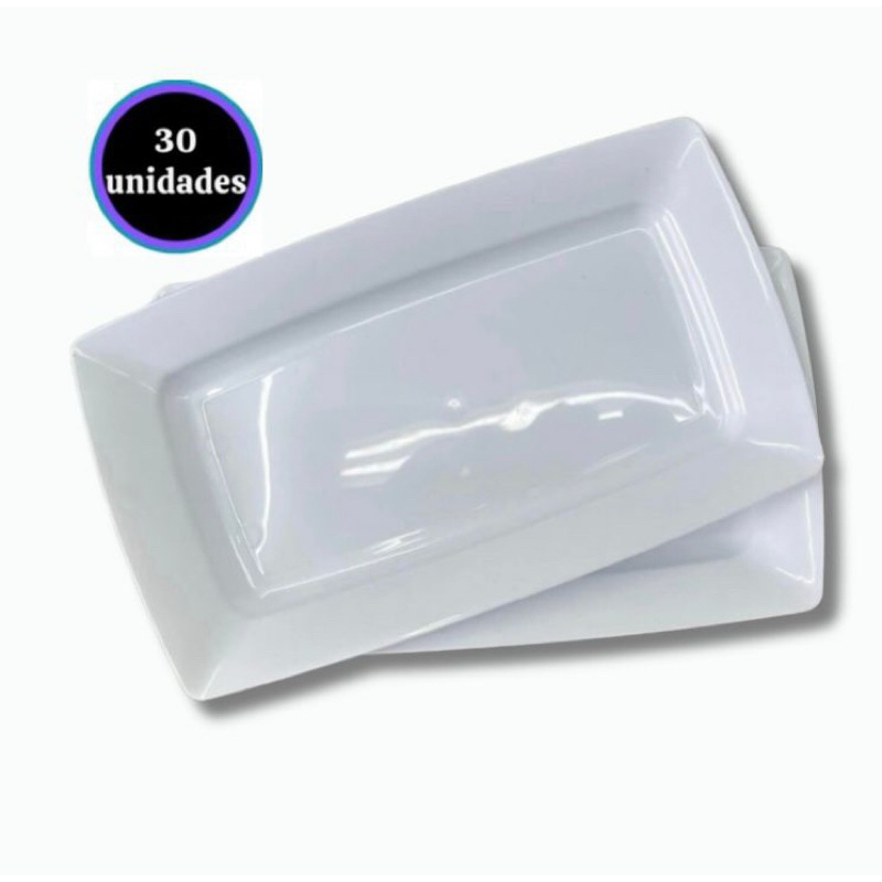 Kit 30 Bandejas Petisqueiras Plástico brancas perfeita para Lanches Porções Petiscos Espetinhos Bares Restaurantes