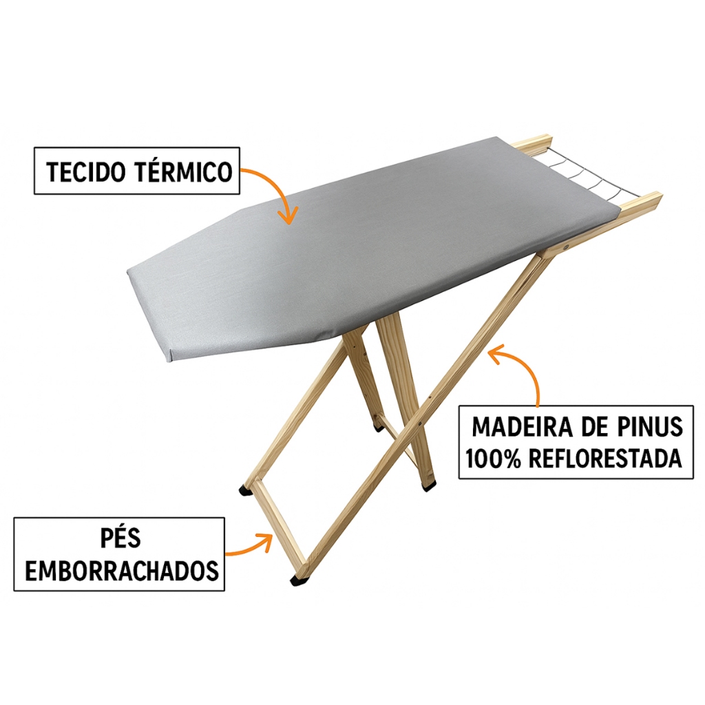 Tabua de Passar de Madeira Resistente com Forro Termico