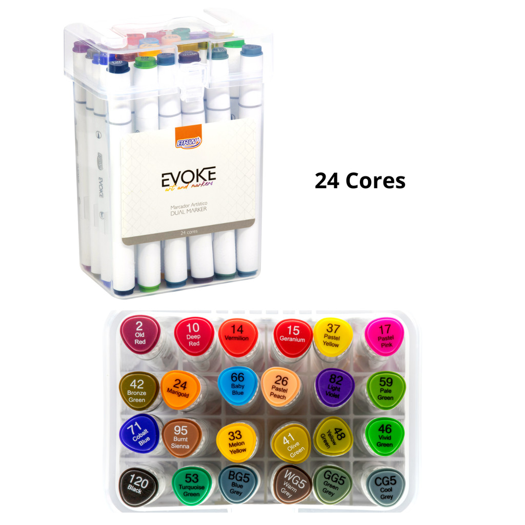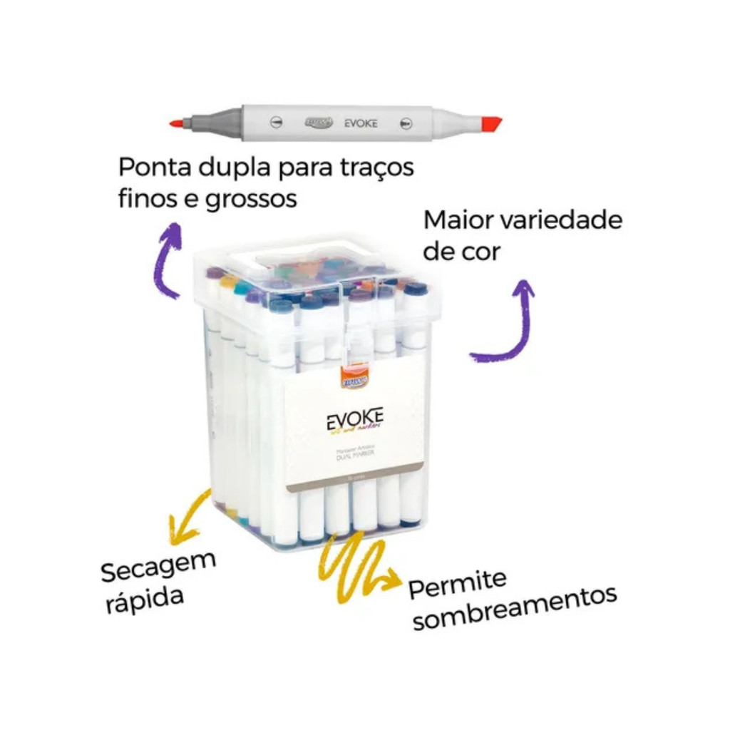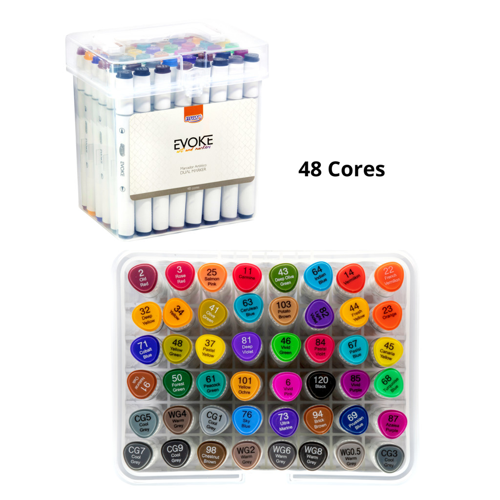 Marcador artístico evoke dual marker estojo com 24, 36, 48 e 80 Cores