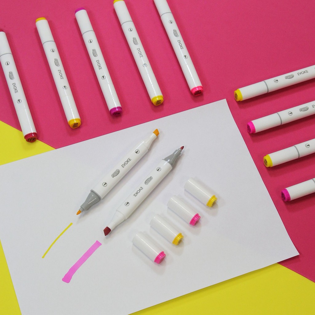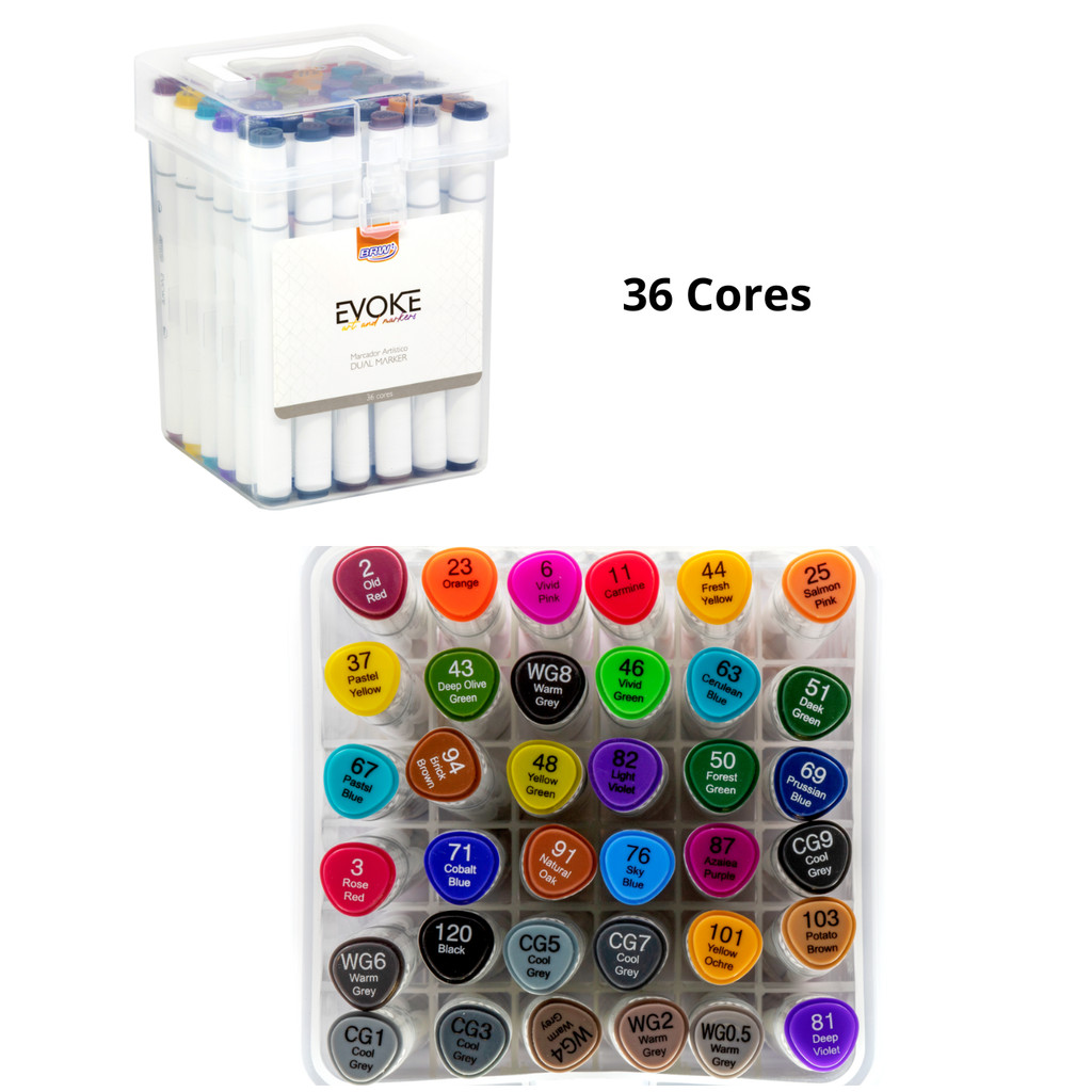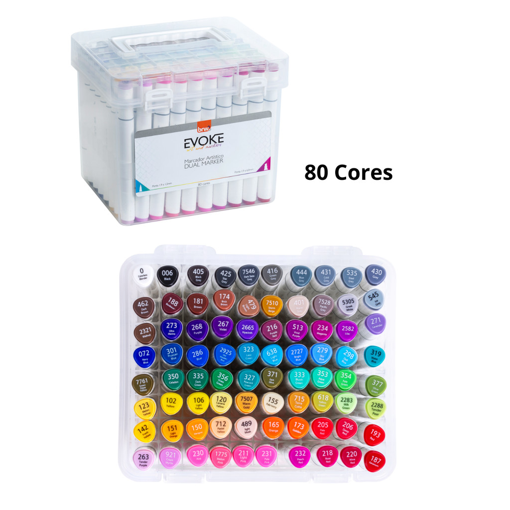 Marcador artístico evoke dual marker estojo com 24, 36, 48 e 80 Cores