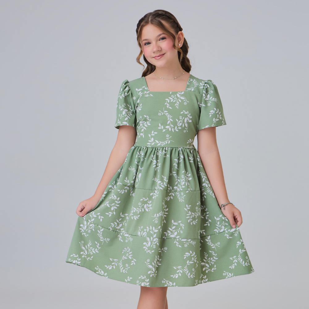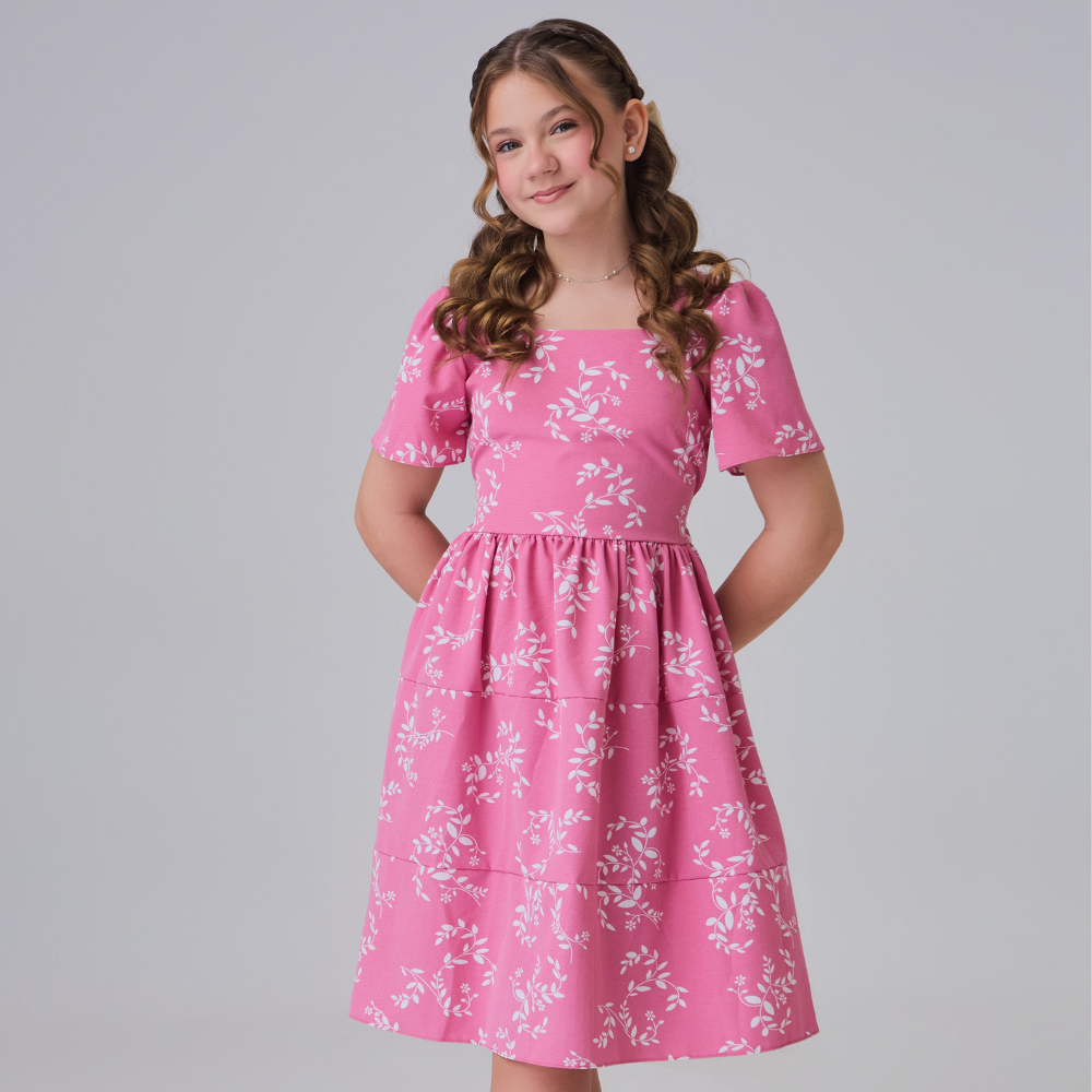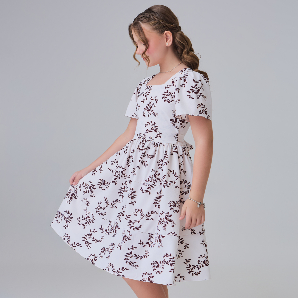 Vestido Infantil Juvenil de Menina Blogueirinha Floral Estampado Floral