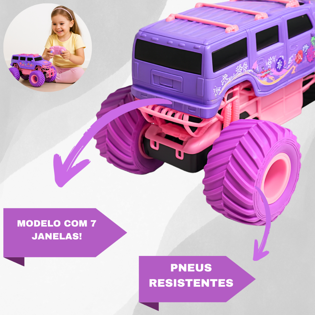 Carrinho Controle Remoto Jeep Rosa Menina Recarregável 4x4 Off Road Grande